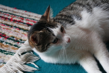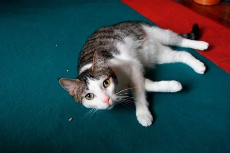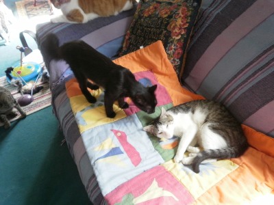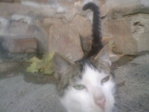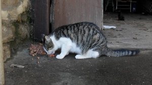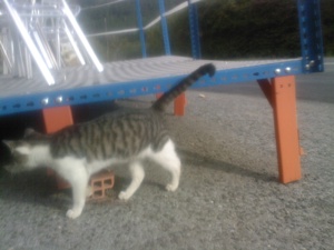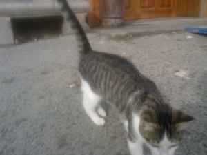 Este es»Gris», en realidad no tiene nombre. Es un gato de unos 6 meses, que apareció en el restaurante de unos clientes. A veces les «aparecen» gatos, la gente sabe que les dan de comer (tienen pienso las 24 horas y después de comer los restos del comedor)… y están hartos de que todos se mueran, si no es atropellados, enfermos o comidos por el raposo.