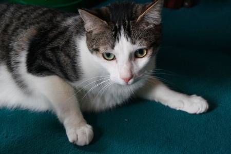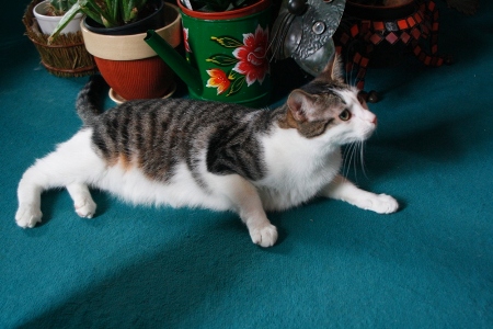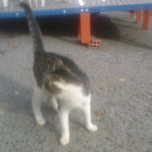 Gris y sus hermanos viven en la carretera junto a su madre. Gris es bastante grandote y muy mimoso. Cuando te acercas viene corriendo a ver si hay algo que comer aunque hambre no pasan. Ronronea y se deja coger.