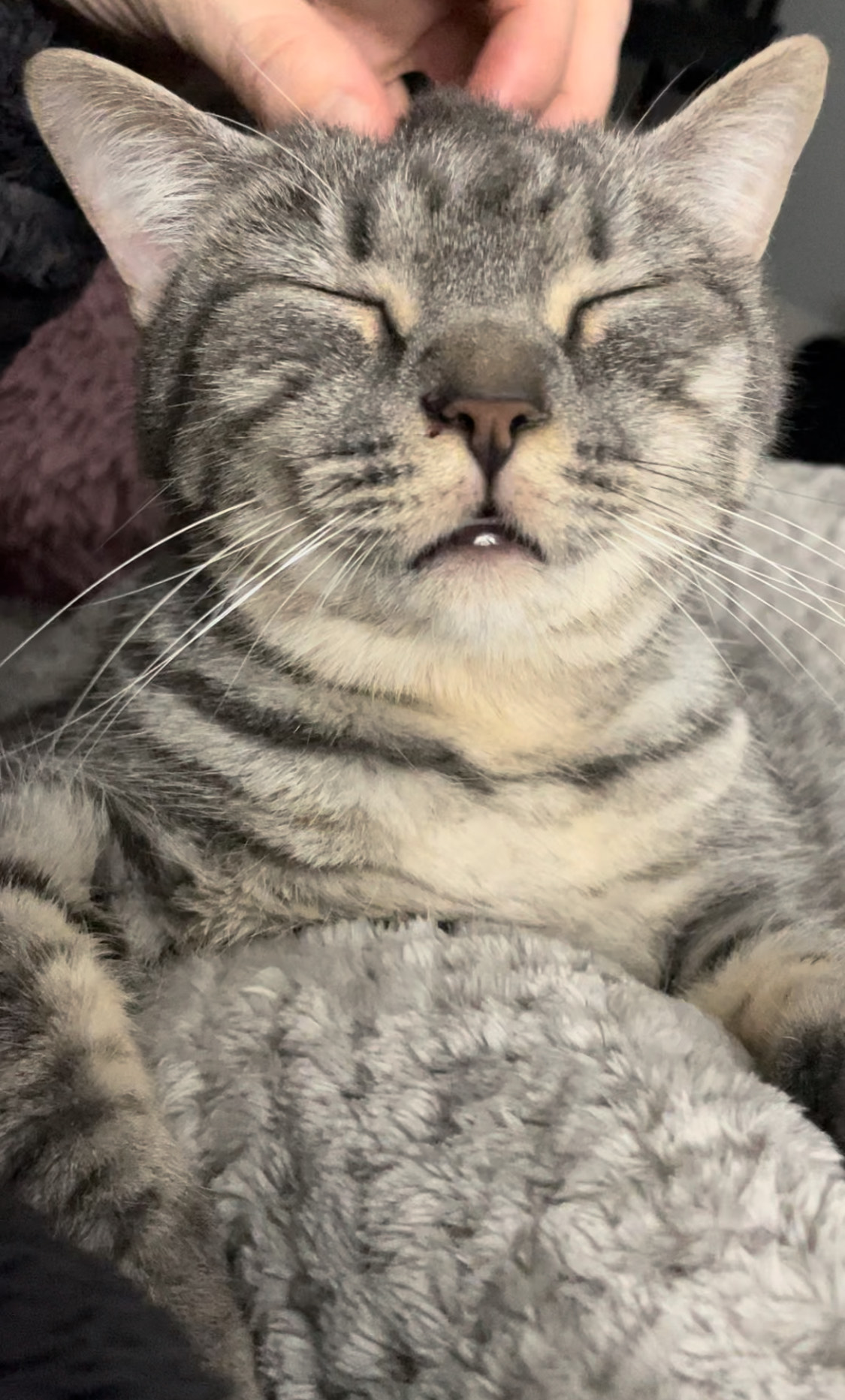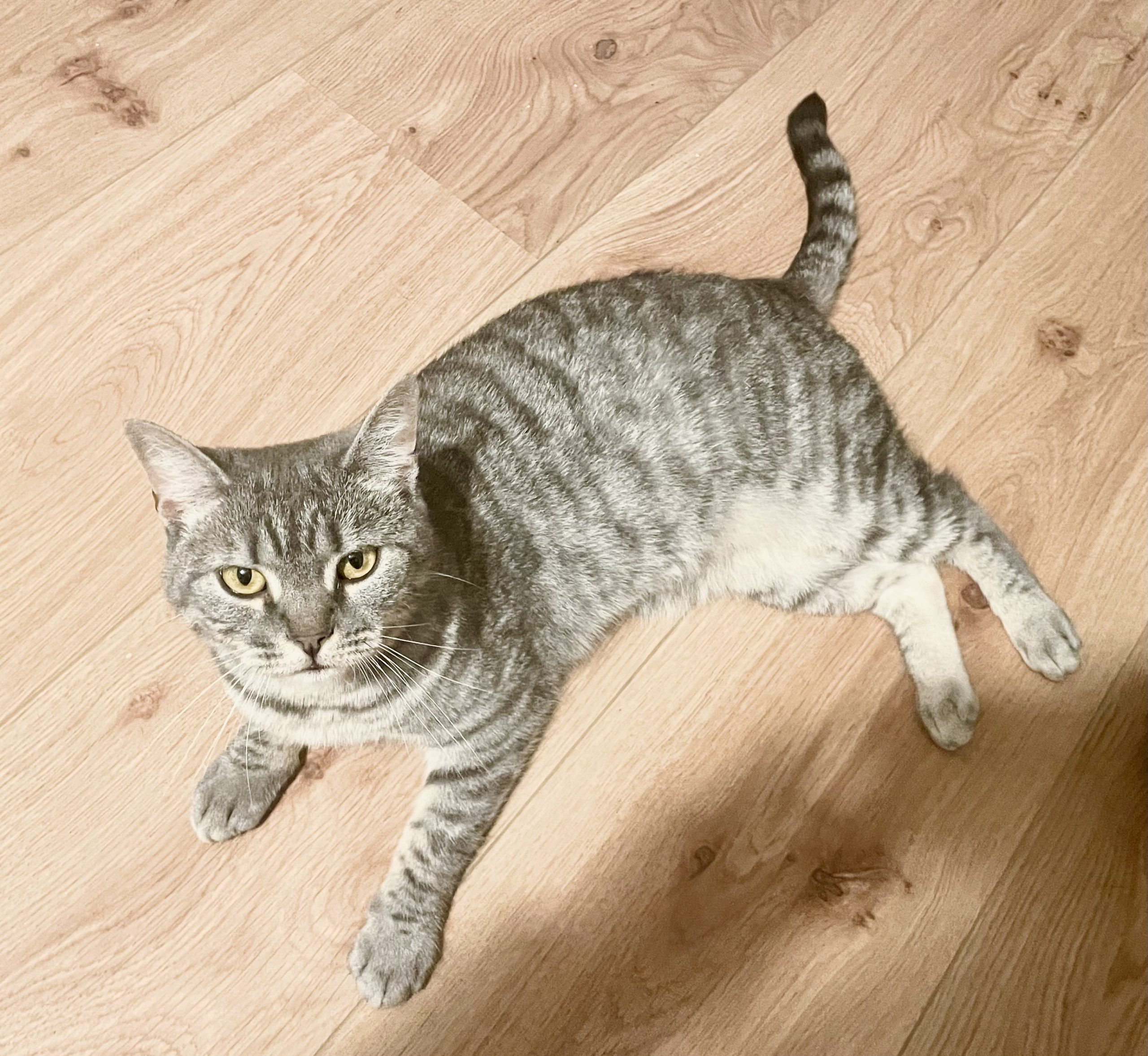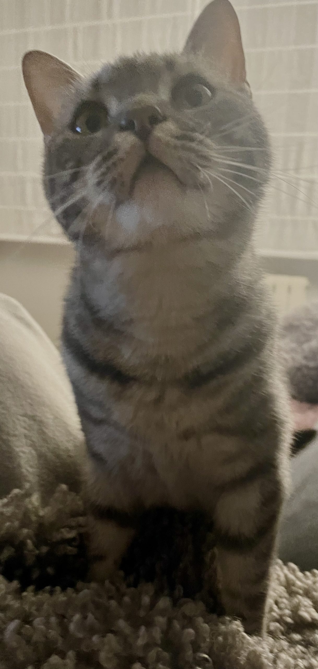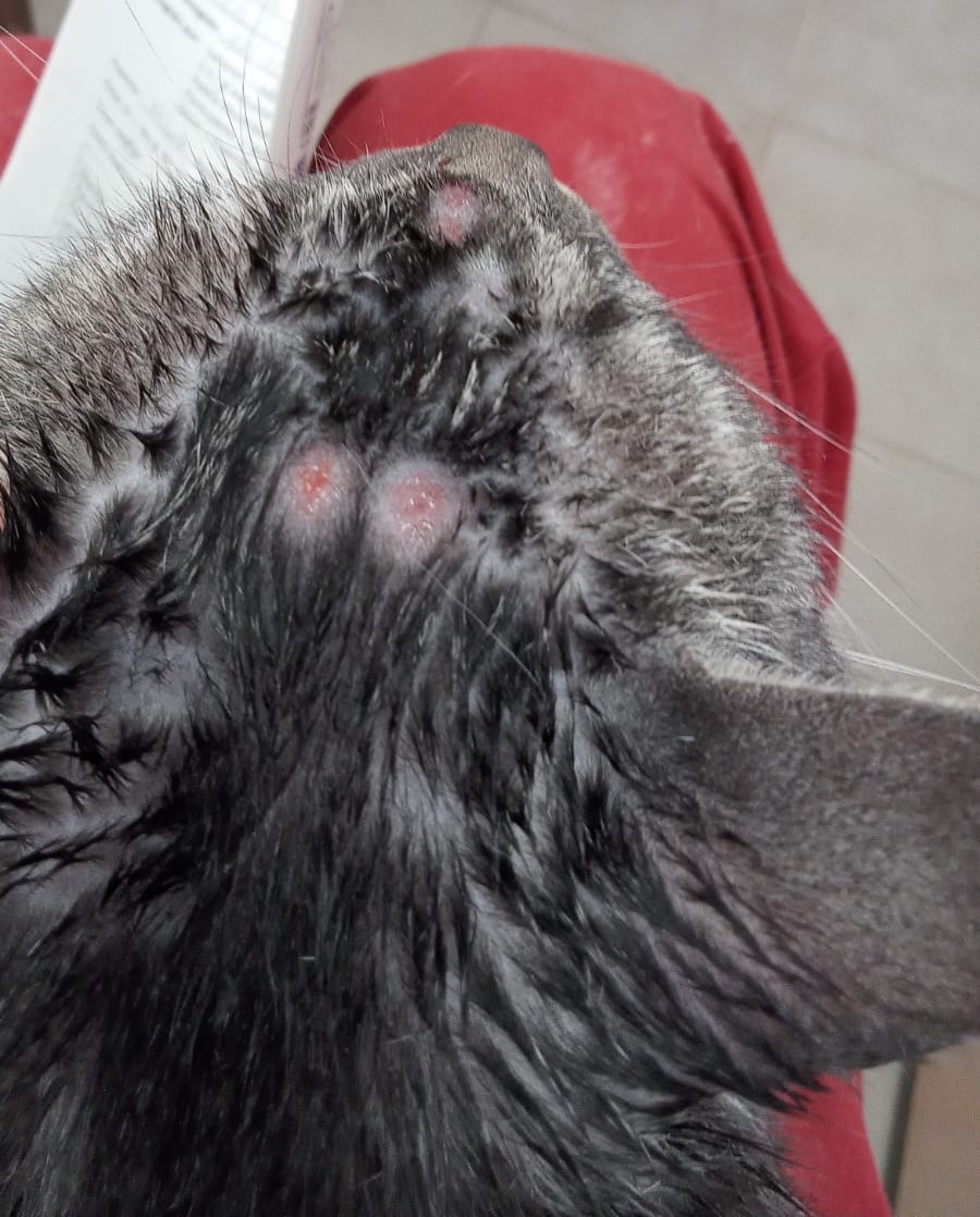 GRISA no llega al añito de edad. Es muy sociable y simpaticona con las personas. Nunca ha convivido con gatos pero no creemos que tenga problemas. Ahora mismo está en tratamiento por unas calvitas con las que llegó, pero ya está mucho mejor y empieza a tener pelito. Pronto se le dará el alta del hospital. 🙂