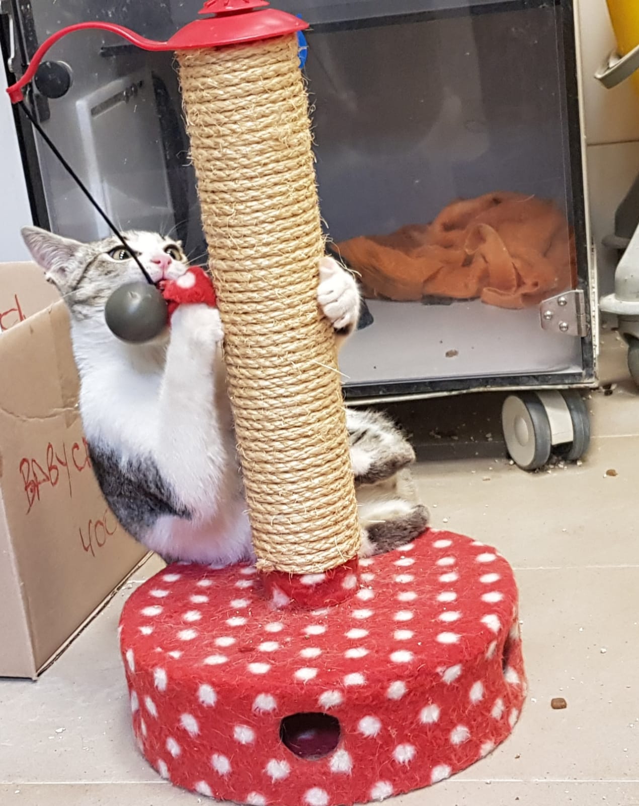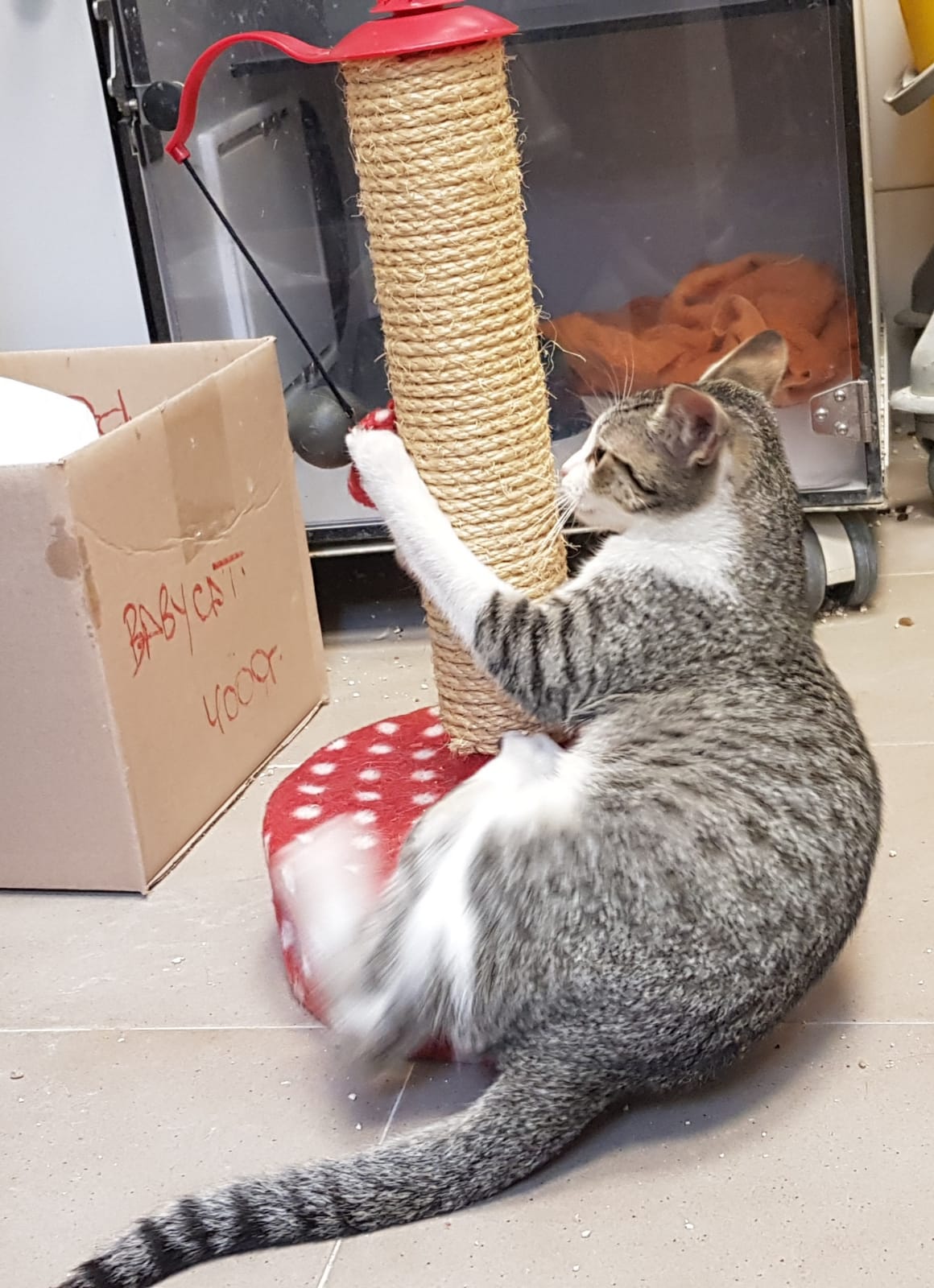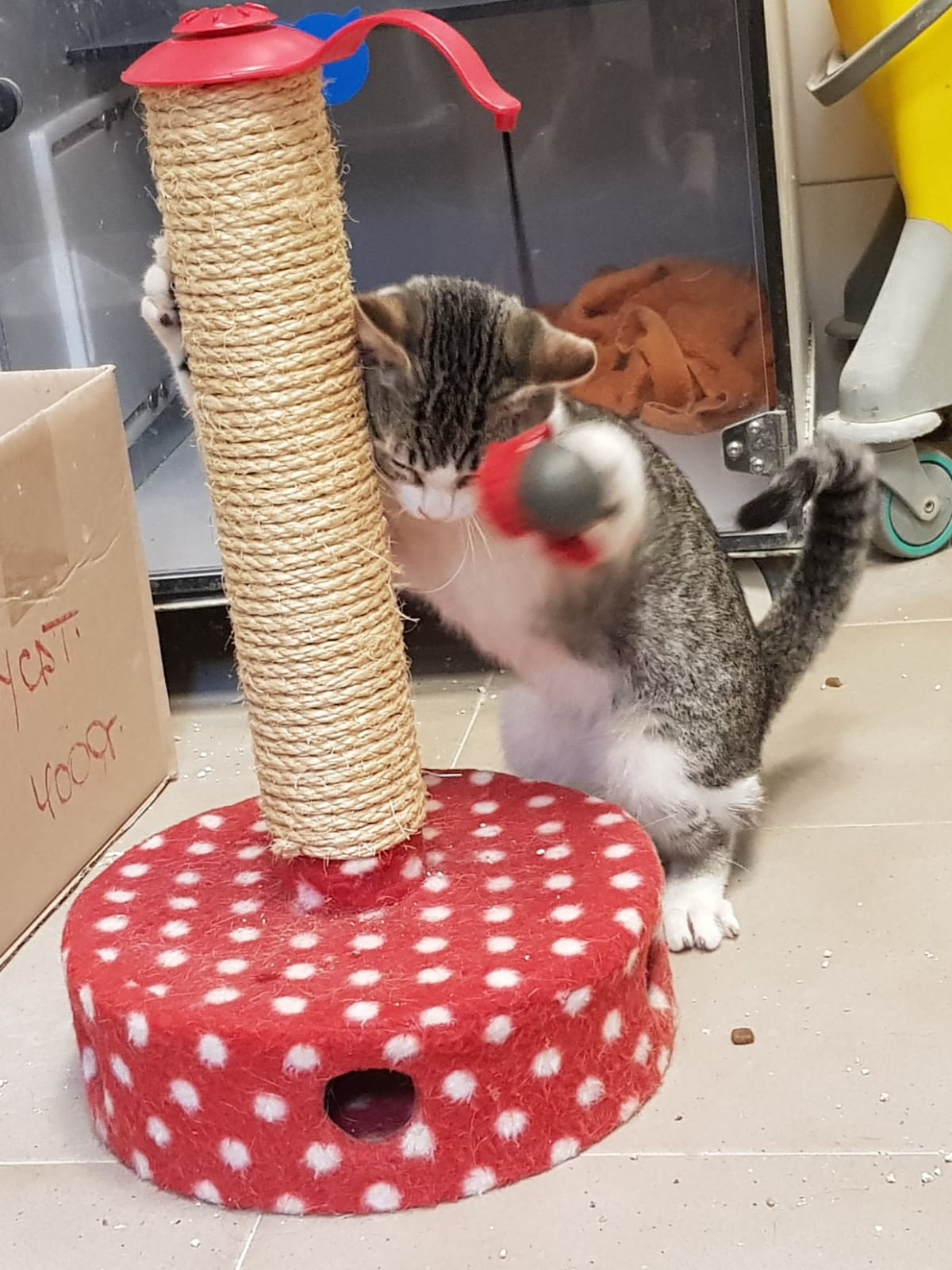 Grissy es solo un cachorro que ha sido abandonado y llevado a la perrera. Como buen enano es juguetón, cariñoso y ¡muy activo! aguanta en la jaula pero en cuanto le abres la puerta como veis en las fotos, hace guerras con el rascador 😀 . Seria estupendo que alguien le vea y le de una oportunidad para no tener que seguir ni un día mas en una jaula. ¿Quieres conocer a Grissy? ¡Rellena su formulario!