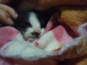 Gusi era uno de los bebés de Lesly, hubo que quitarselos para que su vida y la de ellos no corrieran peligro y cuidarles por separado, pero algunos se empezaron a poner malitos , uno de ellos fué Gusiluz…el pobre peque no aguanto pese a los cuidados de su casa de acogida, por lo menos al levantarse a darle la última toma, Jessica, su casa de acogidase dió cuenta de que estaba muy pachucho, asi que le pusó calor y se quedó con él… no estuvo solo. Gracias! Y a ti pequeño Gusi, saluda a tus hermanitos que tambien se han ido, no te olvidaremos, descansa pequeñin