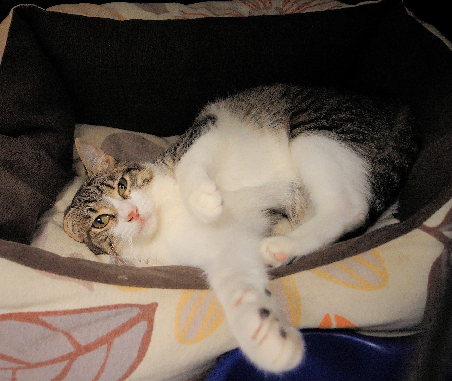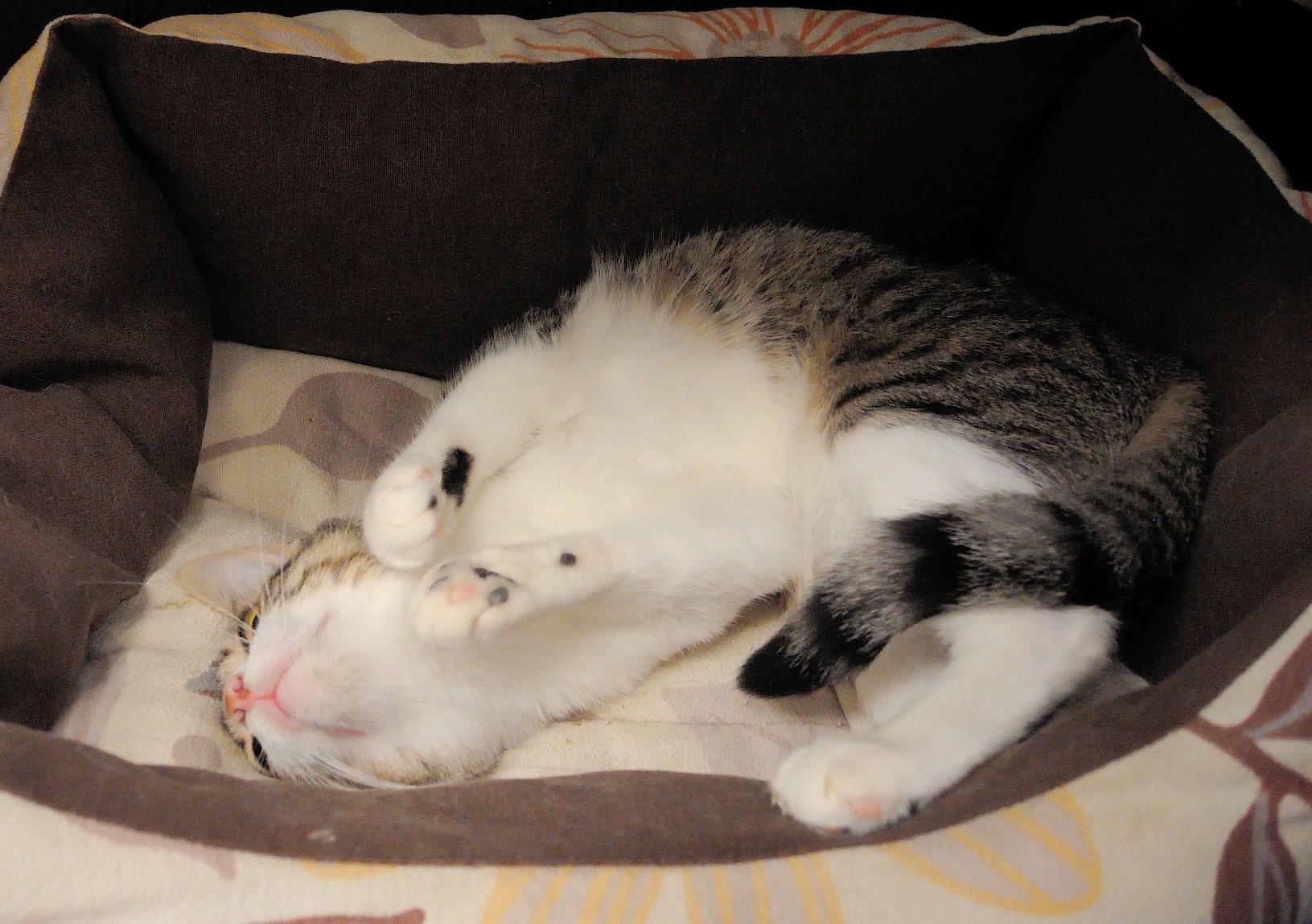 HAPY se ha vuelto más confiada. Aún está en jaul pero ya se deja acariciar y en cuanto te ve hace la croqueta en su camita. Se le ve mucho más relajada y contenta. Ahora solo le falta encontrar un hogar donde terminar de abrirse y dormir calentita hecha una rosquilla. 🙂