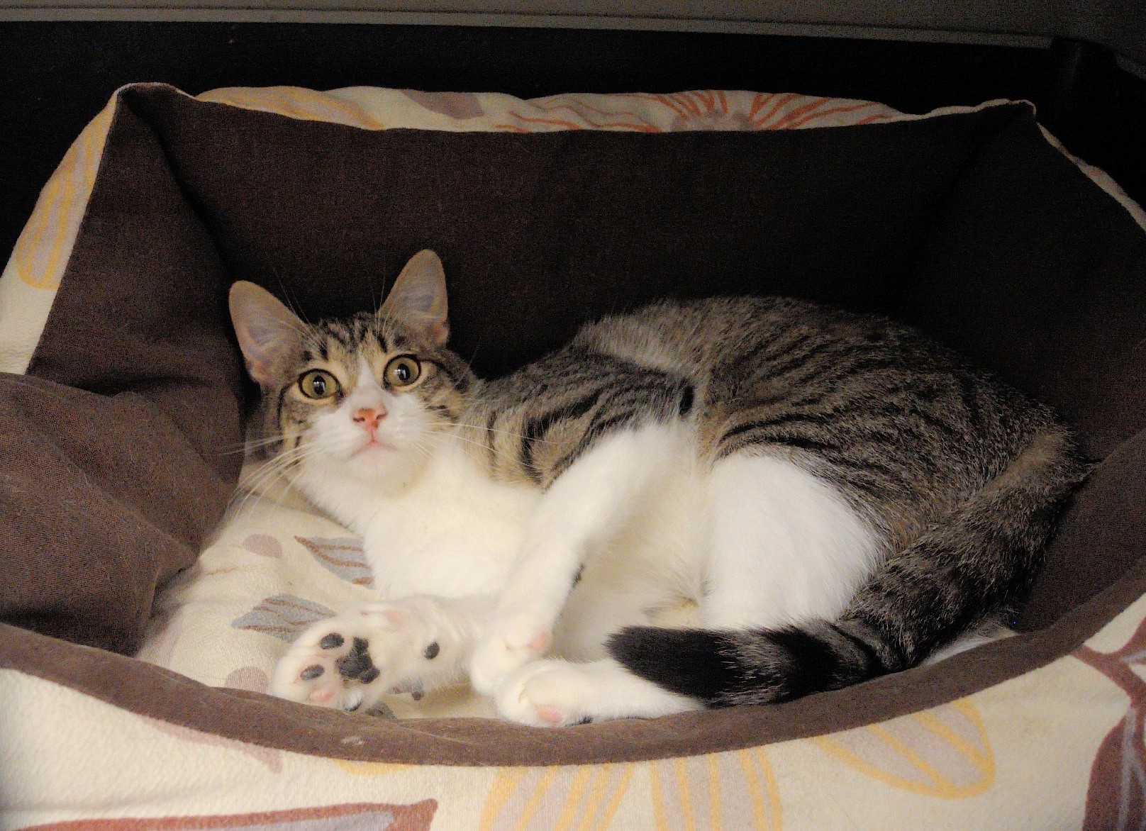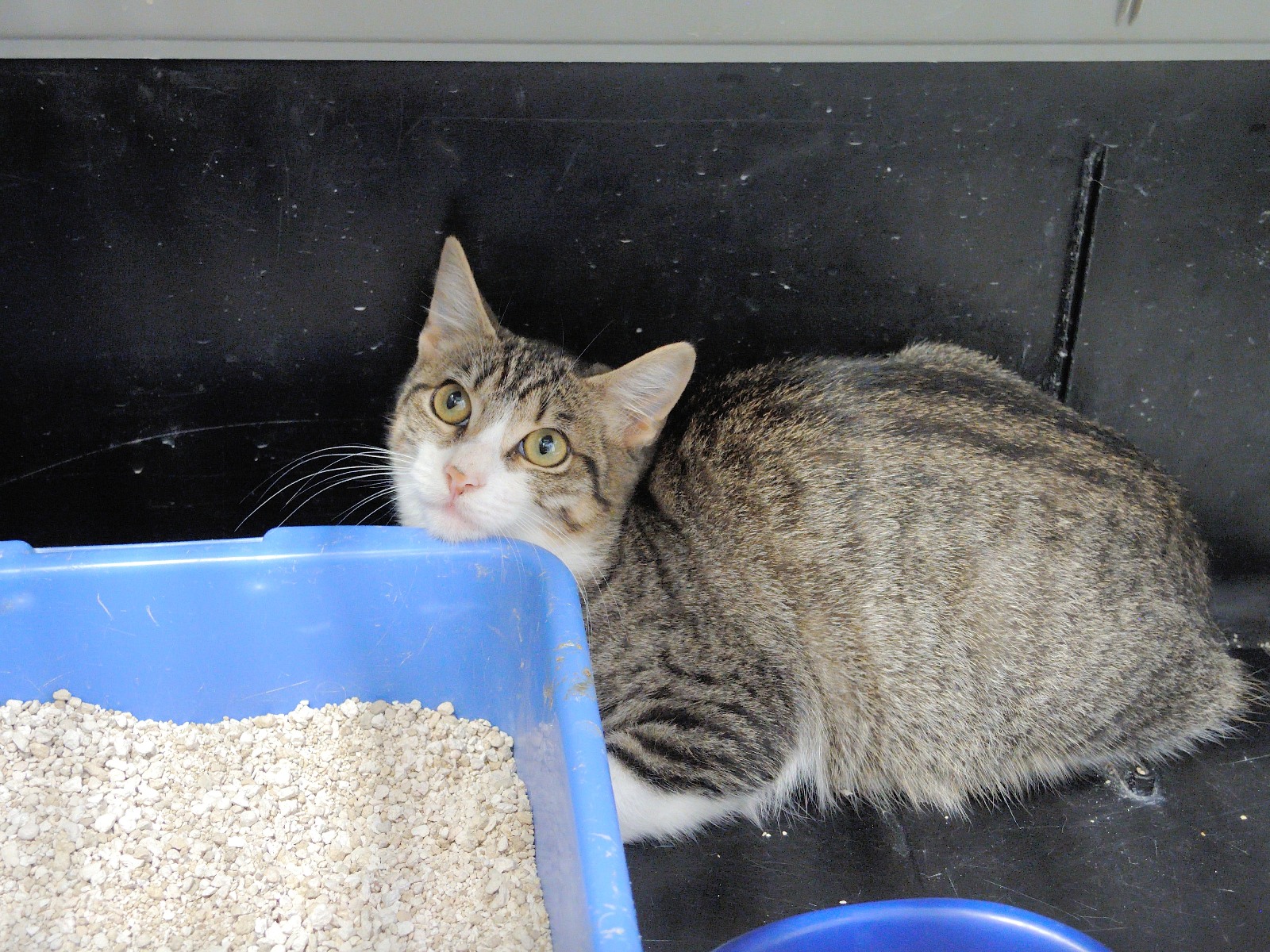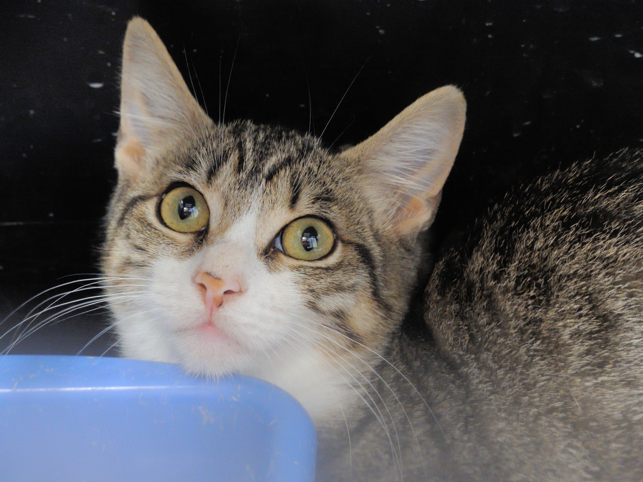 HAPY tiene unos 7-8 meses. Lleva ya dos meses en Artxanda. Es bastante desconfiada y de momento sigue en su transportin. Cuando pase a recinto valoraremos mejor su carácter.