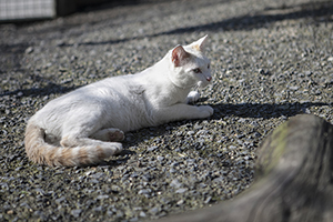 Si bien al principio su actitud era de desconfianza (bufaba al verte) ahora se muestra más relajado y confiado. Parece que en la calle convivía con otros gatos, por lo que sería un excelente compañero para otros gatos caseros.