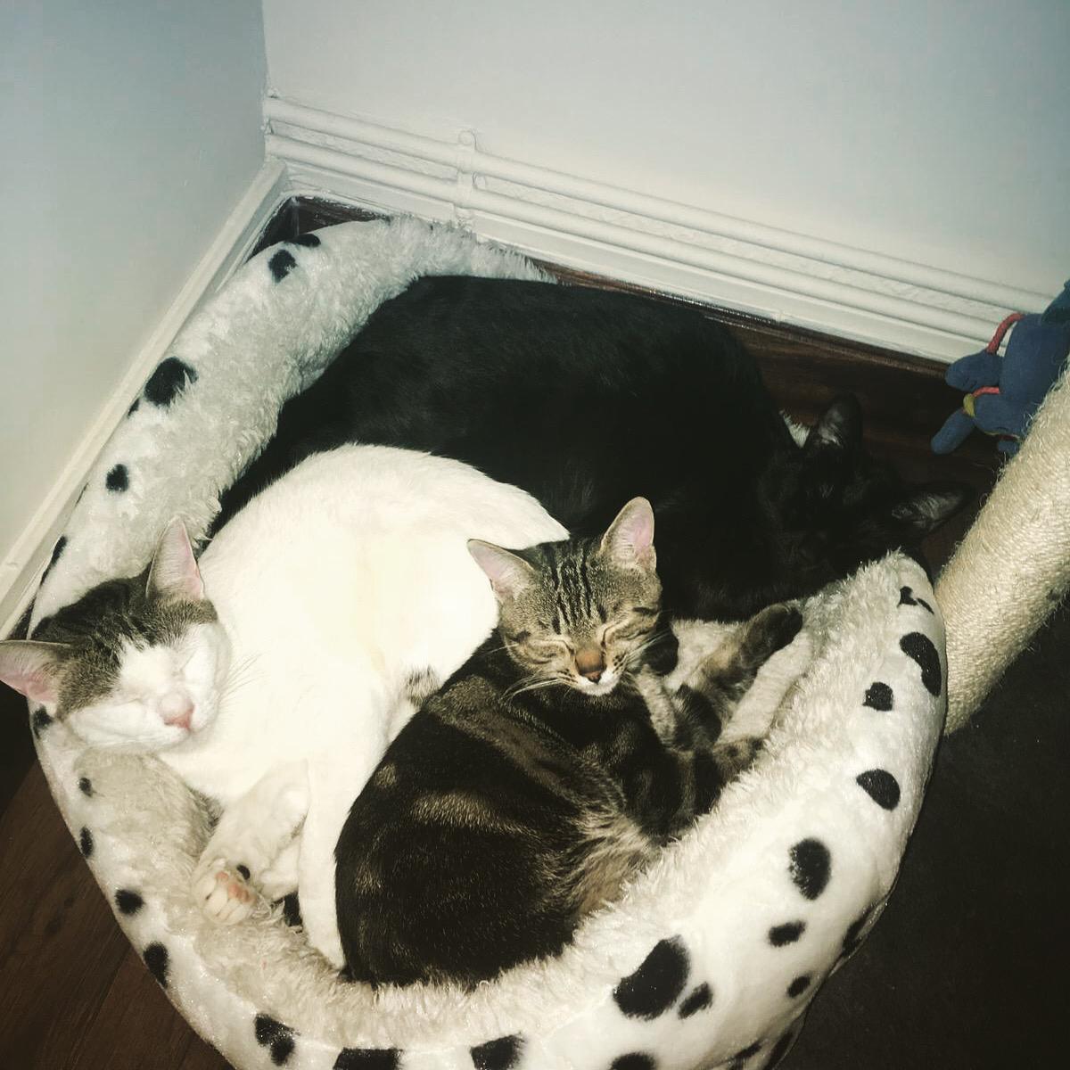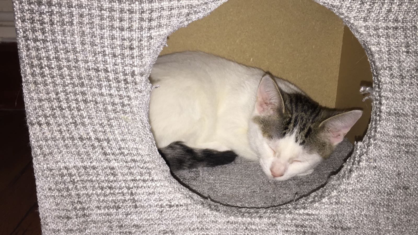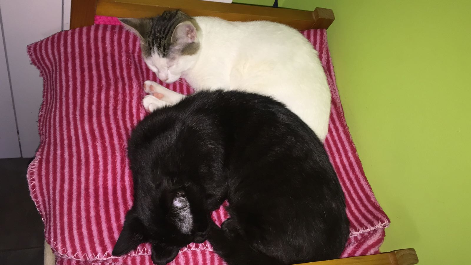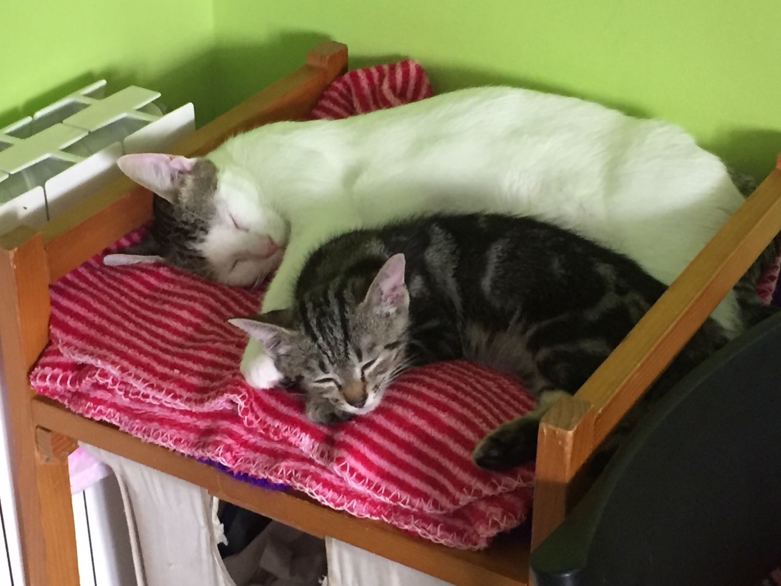 Himeji ahora es Mayi. Encontró un hogar precioso en el que ya vivía otra gatita, Evie. Sus adoptantes supieron, con paciencia, hacer unas pautas de presentación perfectas. Tanto es así, que las gatas se hicieron inseparables. Después llegó un tercer compañero gato. Han formado una  superfamilia gatuna, que nos encanta ver. Sus adoptantes nos lo agradecen, ya que nos dicen que no pueden estar más contentos. ¡Mil gracias a vosotros por darle esta oportunidad!