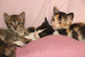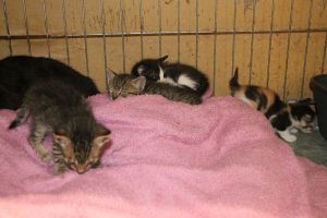 Los peques son dos nenas y tres nene y siguen mamando de su mami, dentro de poco esperamos poder empezar con la comida sólida para así liberarla algo a ella y que empiece a recuperarse.