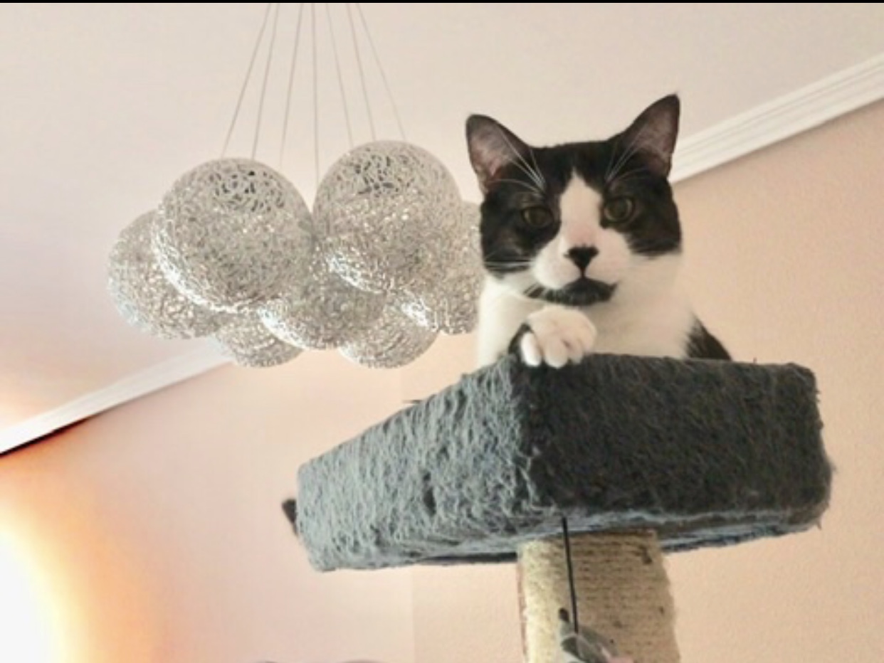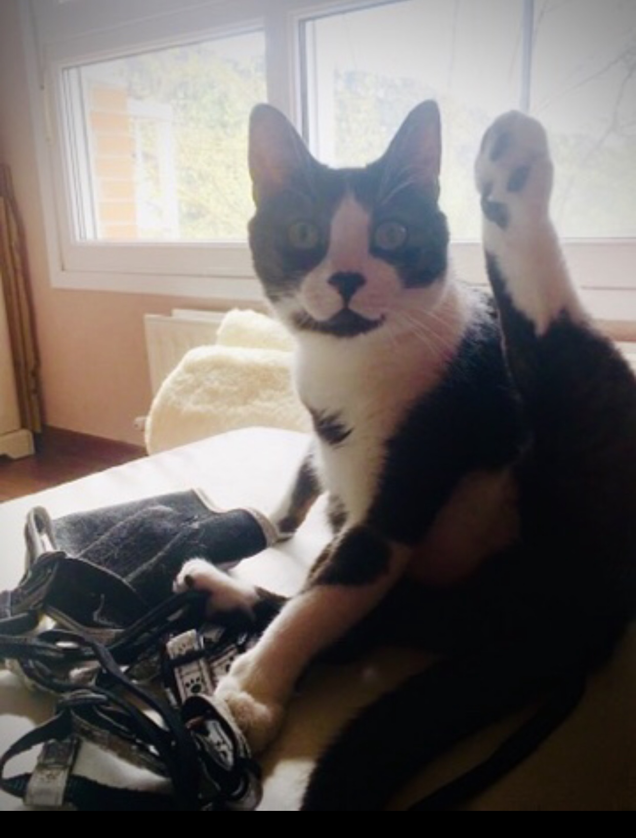 Es un gato muy tranquilo, le gusta lamerse para estar guapo y se tumba y no se mete con nadie.