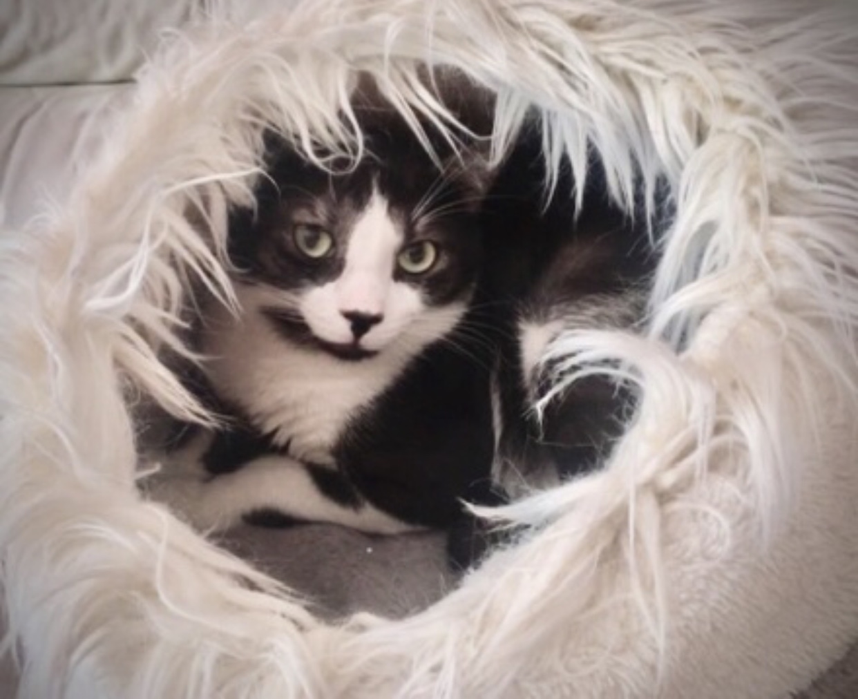 Le gusta estar acompañado y tumbarse a tu lado. Le gustan los premios pero no se pega con nadie espera su turno paciente. Se lleva bien con otros gatos y nunca se mete con ninguno. Aunque le estiren la zarpa, él simplemente no quiere problemas.