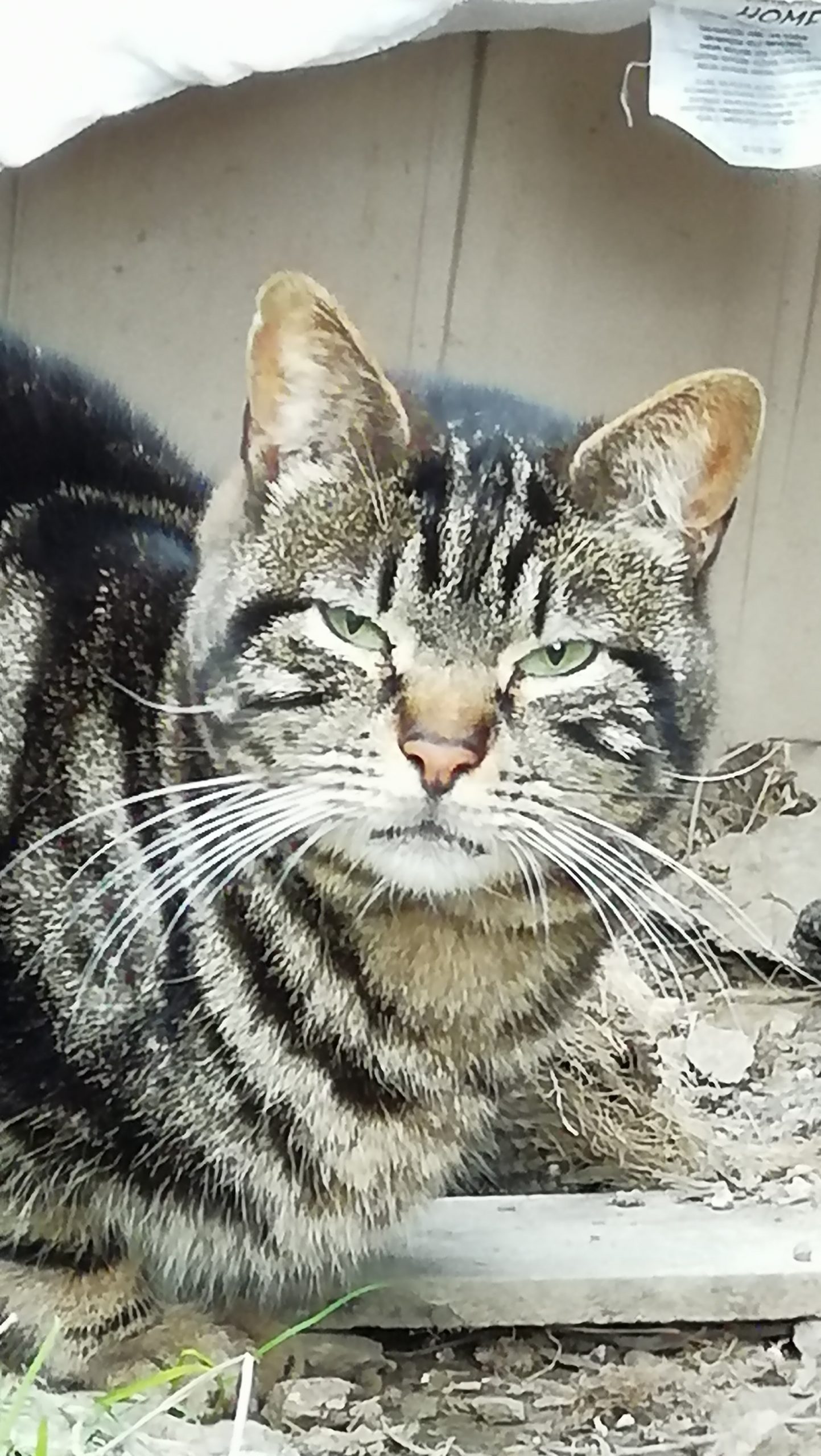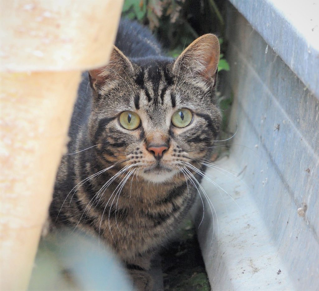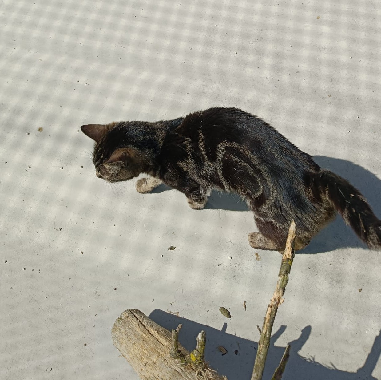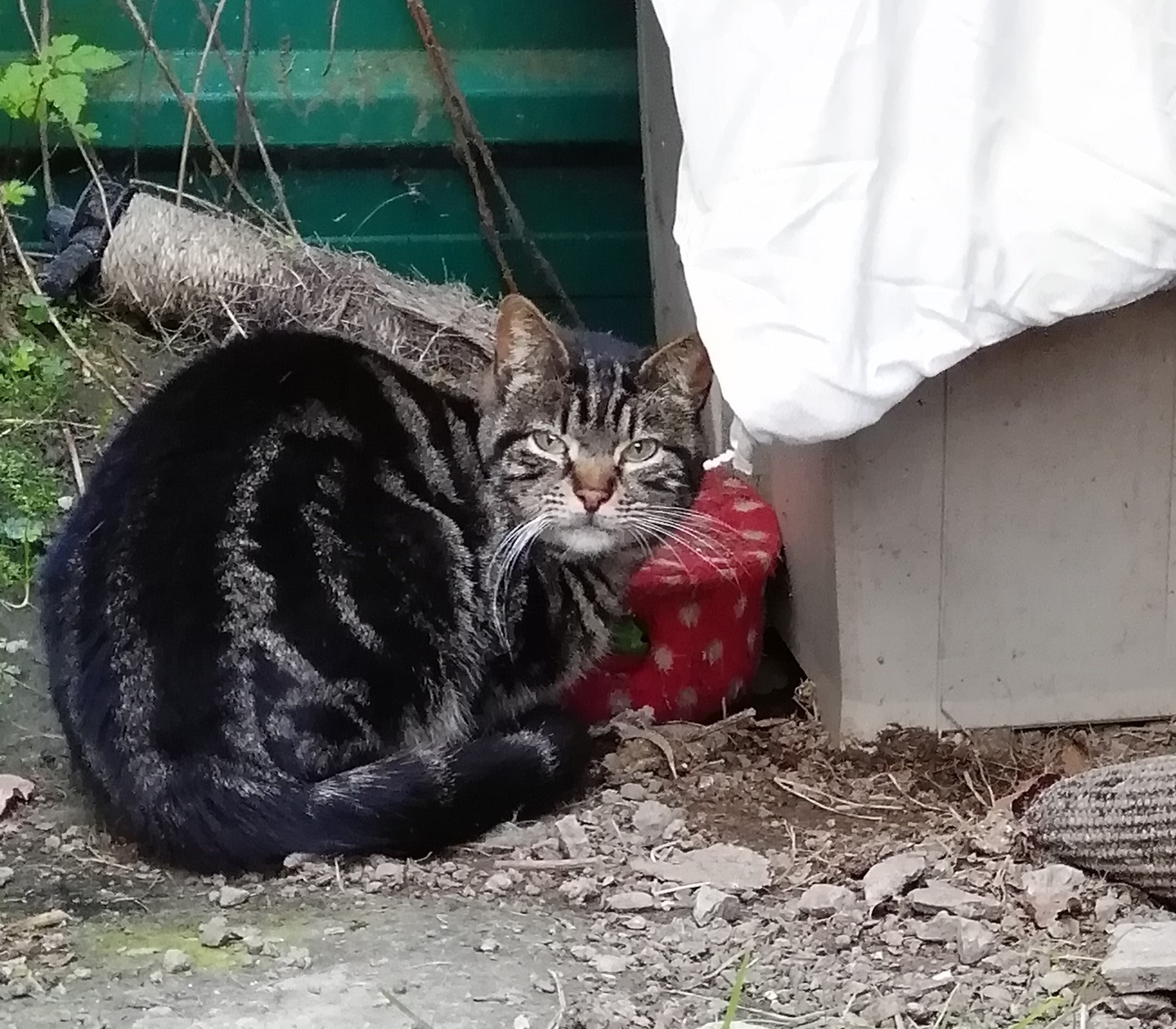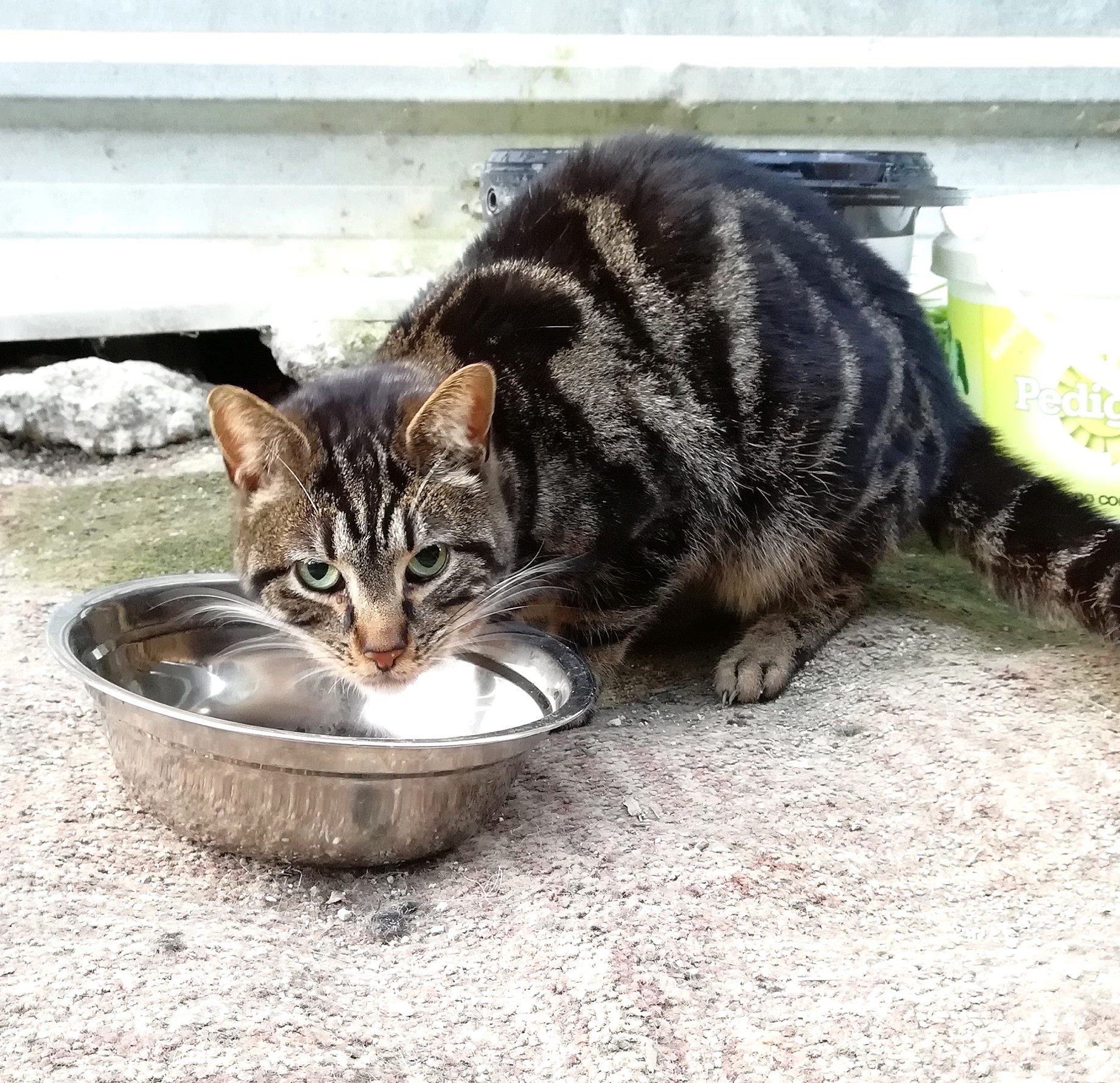 IPANEMA era muy huidizo hasta hace poco tiempo. En algún momento ha vencido sus miedos y prefiere dejarse ver para acercarse a comer su latita. Estando tranquilo se deja acariciar, eso si el tiempo justo.