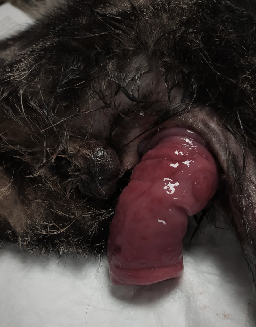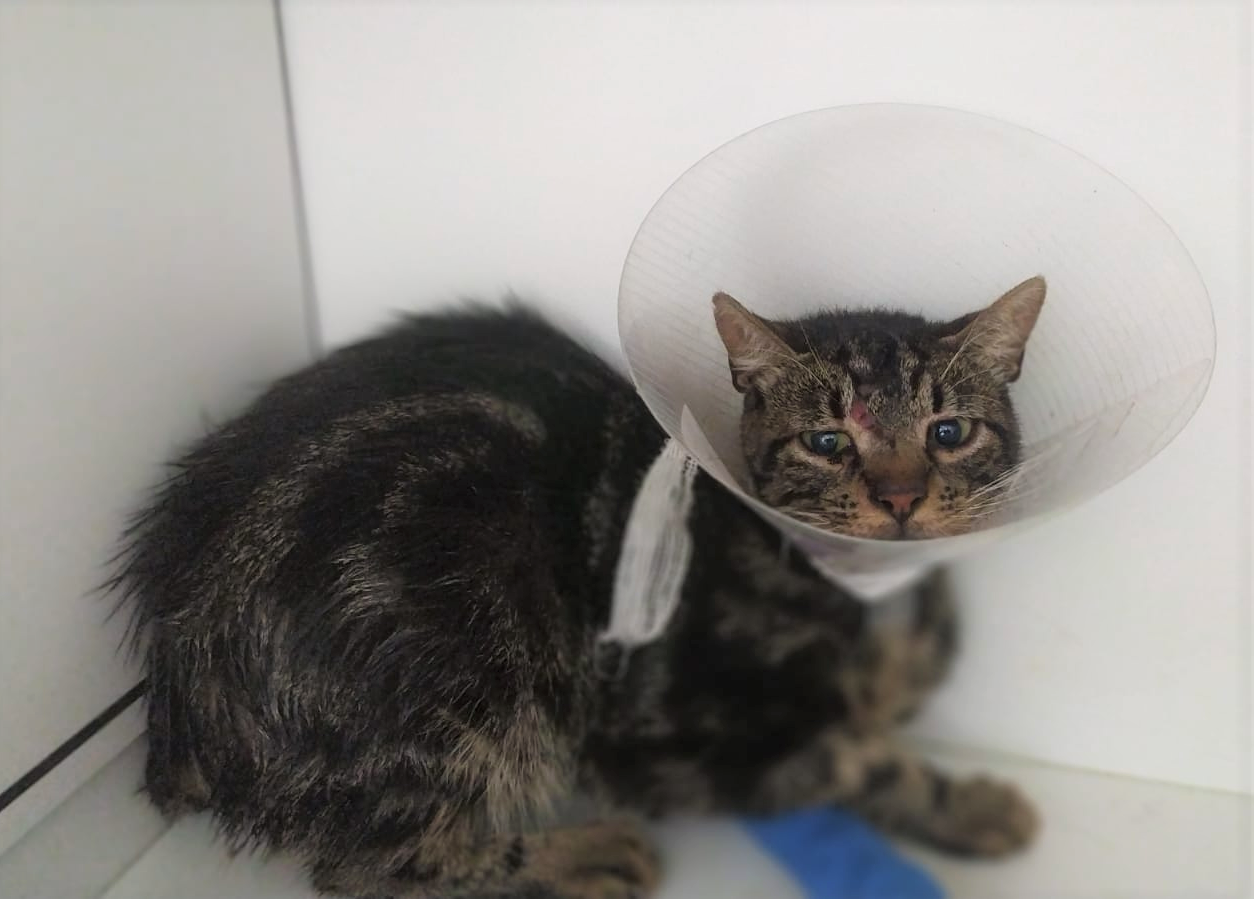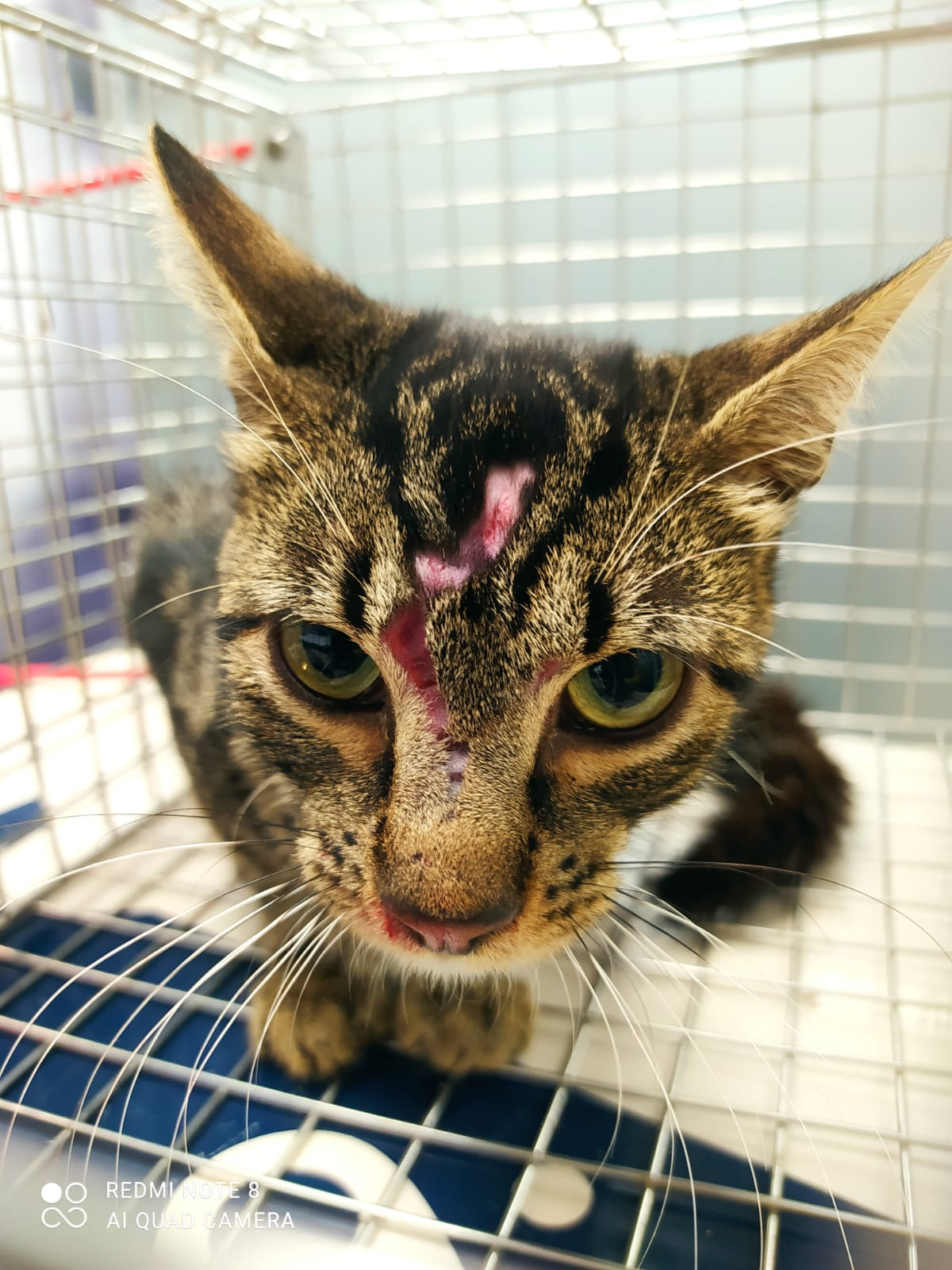 IPANEMA es un gatico joven de unos 6 meses de edad. Procede de una colonia de BILBAO y un día apareció con prolapso rectal.  Además estaba parasitada internamente de forma masiva. Se le ha operado para realizarle una colopexia. Por el momento no es muy sociable aunque los veterinarios consiguen manipularle tapandole con una mantita la cabeza, así se evitan sedarle cada vez que tienen que hacerle algo. Con lo que ha tenido que pasar es normal que solo quiera estar solo y tranquilo. Esperamos que se vaya recuperando y sea más sociable.