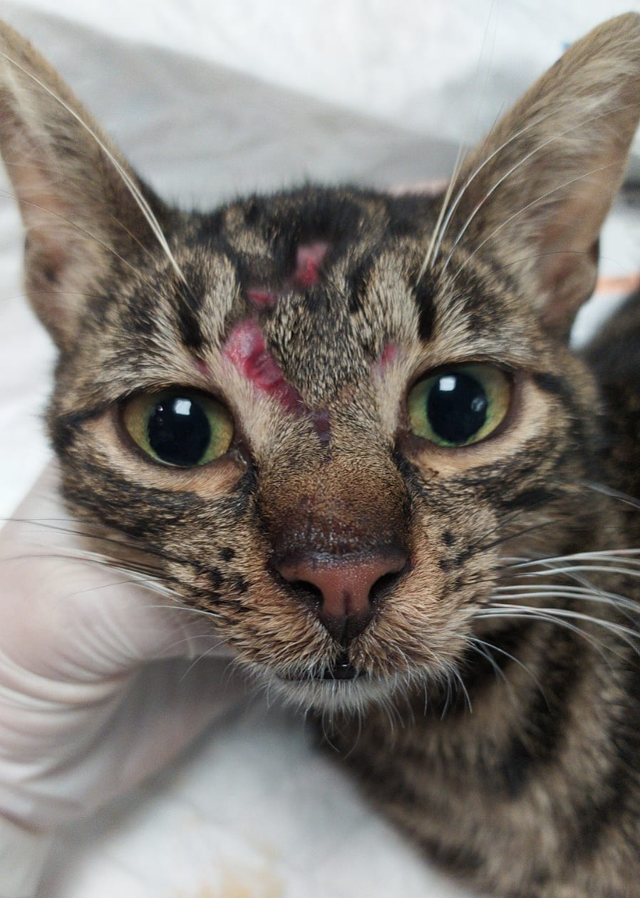 Su llegada no fue fácil: fue recogida de la calle en muy mal estado, con un prolapso rectal que requería atención urgente. A pesar del sufrimiento que había pasado, Ipanema demostró una fortaleza admirable. Hoy, tras tratamiento y cuidados, se encuentra completamente recuperada y en buen estado de salud. Es positiva a inmunodeficiencia felina (FIV), lo que no impide que lleve una vida estable y saludable, solo requiere control y un entorno adecuado.