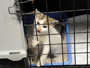 La pobre chiquitina ha sido recogida en la calle con sus 2 mesecitos y aun así es muy buena, no se cansa de pedir atenciones y cariño, frotándose con el enrejado de su jaula y ronroneando al cogerla en brazos.