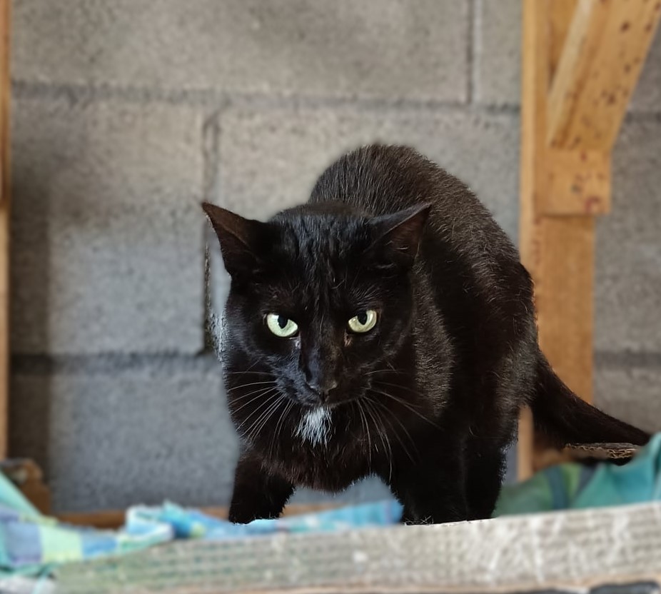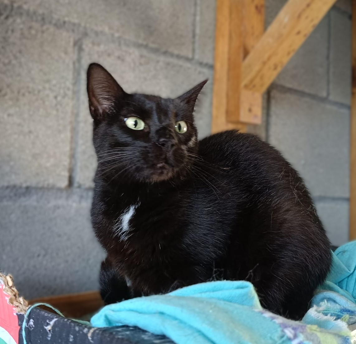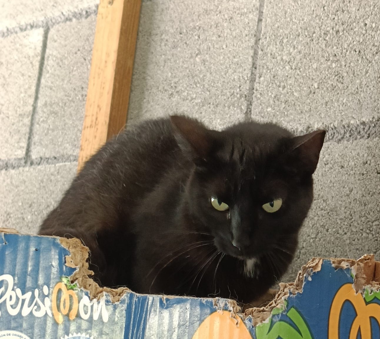 IZEN, es una preciosa gatita negra que llego junto con sus dos hermanos BARIK y FELIPE. Los tres son un poco tímidos y se esconden cuando les vamos sacar fotos. Tienen unos 6 meses.