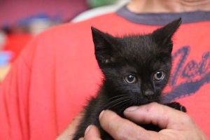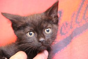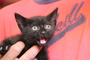 Es una pulguilla algo asustada, pero que se deja hacer y en nada va a ser adorable y cariñosa   ya está descubriendo que no hay que pelear y sufrir por la comida y que una mano de humano no es para hacerle daño.