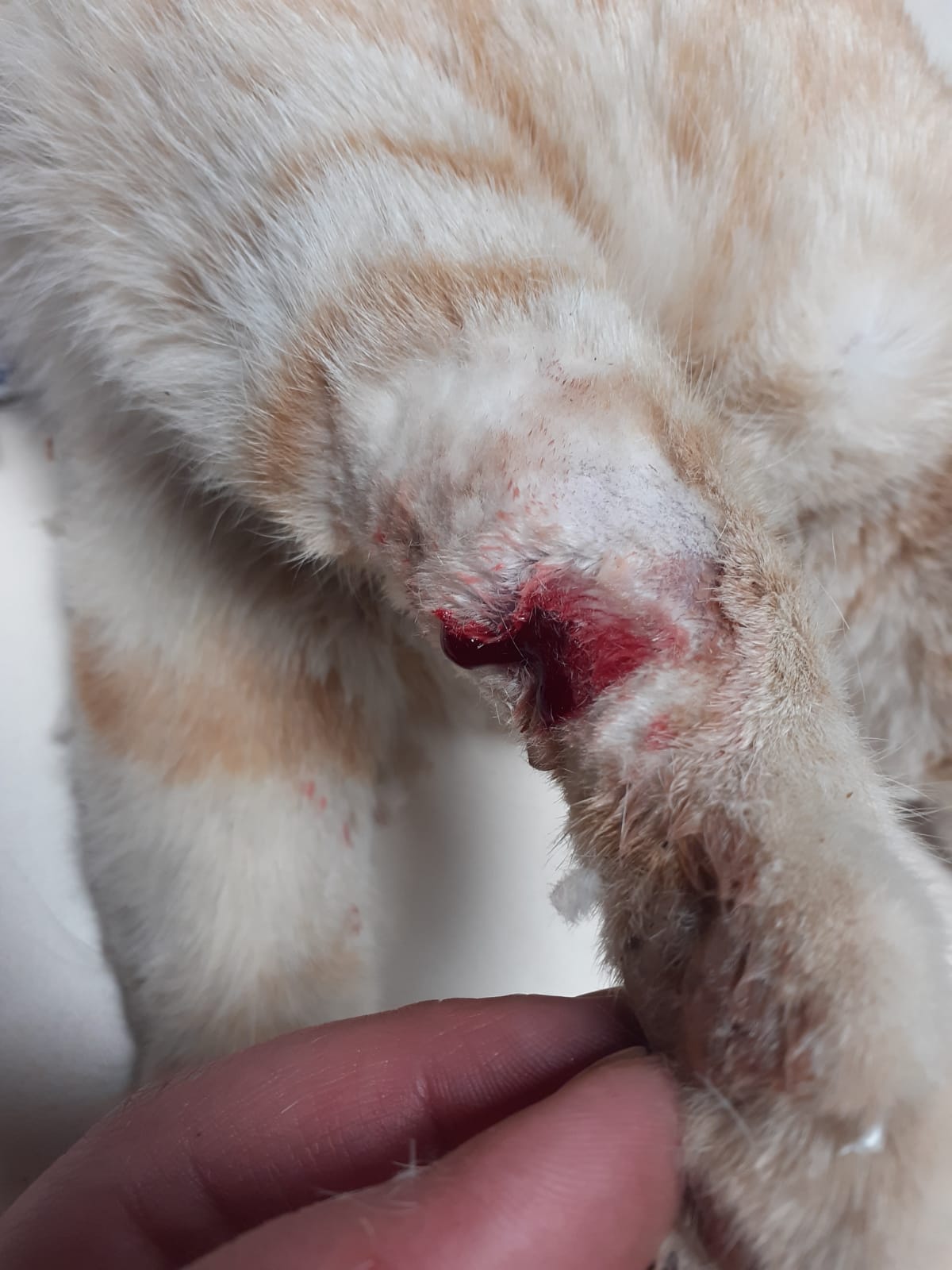 Joselito llegaba el pasado domingo de urgencia. Sus alimentadores hacia tres dias que no le veian a la hora de comer y en esta ocasion llegaba con una patita sin apoyar y quejandose asi que le trasladamos inmediatamente a la clinica. Alli bajo sedacion comprobamos que tenia un mordisco en la pata con pus de varios dias de evolucion. En la radiografia no se mostraba fracturas. Tras la cura se quedo ingresado con medicacion y antibiotico esperando que drene bien y puedan hacer curas diarias. Tiene ademas como se aprecia en la foto el tercer parpado «roto» pero no le impide hacer vida normal. Es un gato que en la colonia era muy majo y sociable con sus alimentadores que ademas le bautizaron como Joselito porque al maullar parece que esta cantando. 😀 Creemos que lo mejor es buscarle un buen hogar y sacarle de la calle. Por el momento necesitamos padrinos que nos ayuden con sus gastos veterinarios, si no podeis apadrinarle pero quereis hacer una donacion puntual podeia hacerlo en Caja Rural de NavarraES76 3008 0241 88 2397692928 o KutxabankES63 2095 0360 10 9111588575 o a traves de nuestro PayPal poniendo en concepto «Joselito» ¡¡Ayuda!!