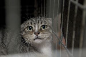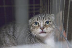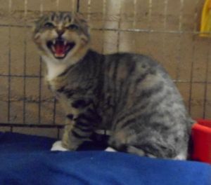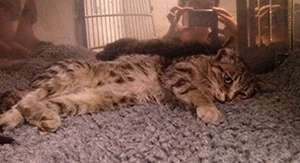 Además, el pobre está tan estresado por la situación, por verse encerrado en una jaula… que hasta hace sus cosas en una manta en vez del arenero… está de los nervios.