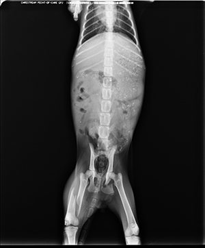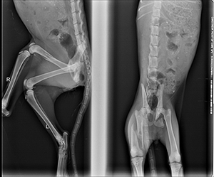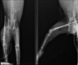 Como se puede apreciar en las radiografías tiene fractura de fémur, de pelvis y el especialista el lunes valorará la cadera. Por el momento la patita hay que operar.