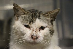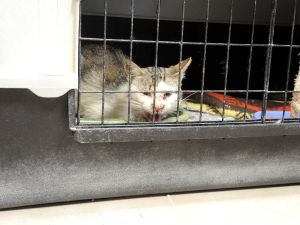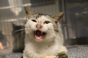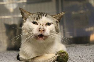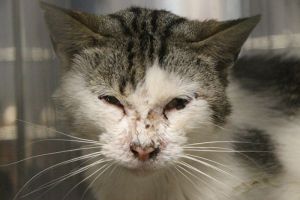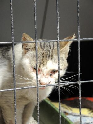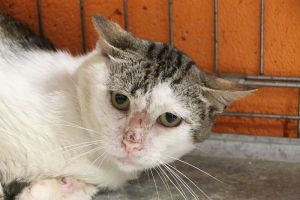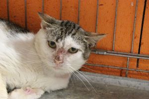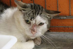 Le hemos sacado inmediatamente e ingresado para intentar salvarle…el resultado de las pruebas y analíticas es desolador, está MUY delicado: hematocrito por los suelos, muy deshidratado, estomatitis, calicivirus, ictericia, bronconeumonia…vamos a hacer todo lo posible por él pero aún no sabemos cómo va a ir.