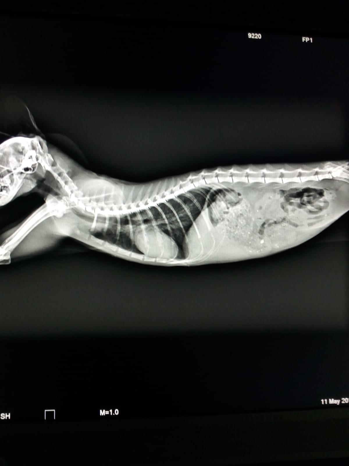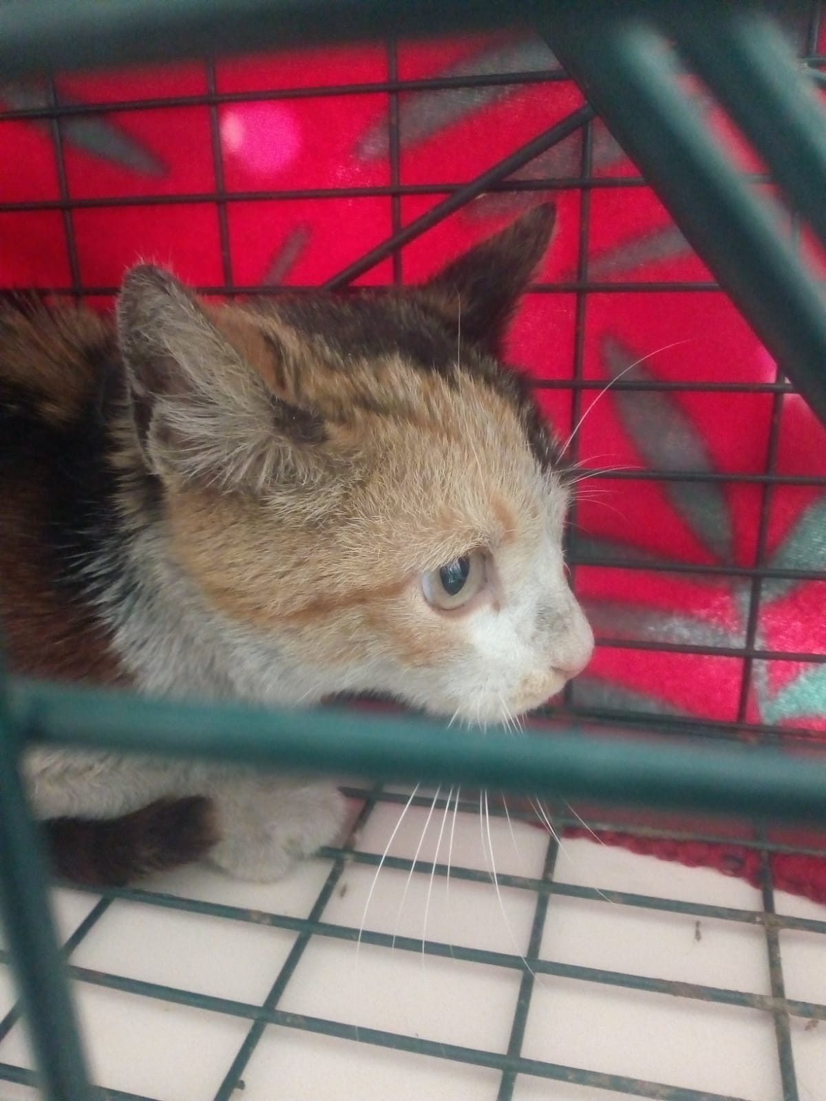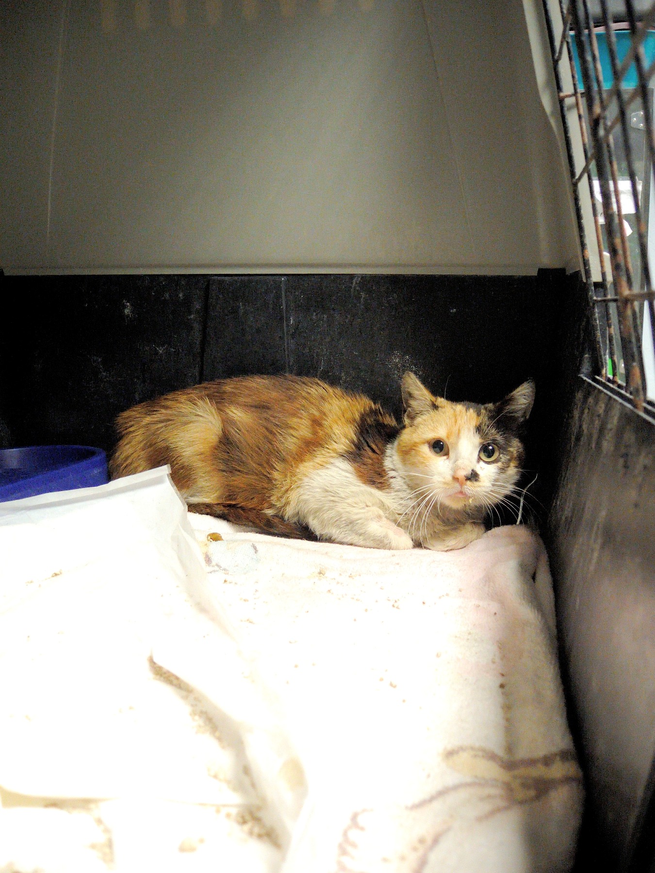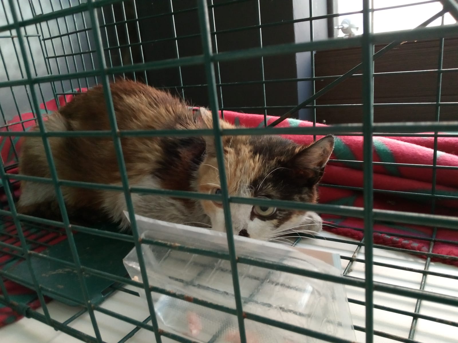 Justi era recogida por una compañera en una colonia en un estado lamentable. Rápidamente la llevamos a ingresar, la estabilizaron y quedo ingresada con antibióticos sueroterapia y calor. Llegaba deshidratada , con anemia, con los riñones fatal (a fecha de alta los riñones estaban bien) y un estado de desnutrición importante. Ademas, tenia coccidios y muchos otros parásitos intestinales. Ha podido salir de la clinica pero a falta de un sitio en el refugio ha ido a la perrera donde esta siguiente su tratamiento antibiotico. Justi por el momento se muestra desconfiada y muy asustada pero confiemos en que con tiempo acabe sociabilizandose.