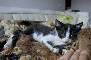 Justin sigue esperando que alguien se enamore de esos ojazos color ámbar. Tiene 3 meses y medio. Es un gato muy cariñoso y muy juguetón, su hermana ya ha sido adoptada y aunque estaban todo el día juntos, él se lleva fenomenal con el resto. Es una auténtica joya, además de un bellezón.