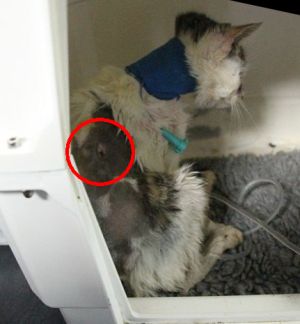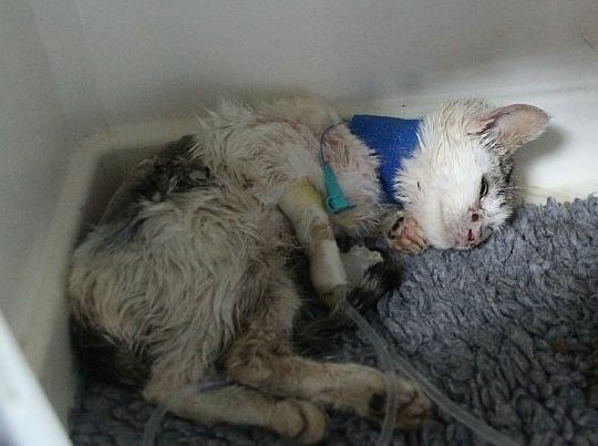 Le han tenido que poner también un tubo esofágico para alimentarla ya que ella ahora mismo no está comiendo solita y es fundamental para que se recupere que coma y coja fuerzas.