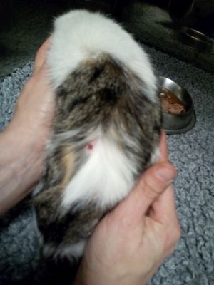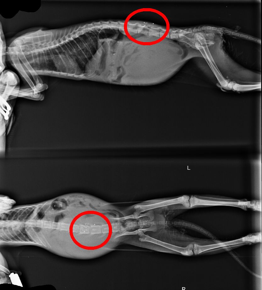 Sorprendentemente, al hacer pruebas de sensibilidad en las patitas…se queja es muy buena señal…nos da ciertas esperanzas aun así es demasiado pronto para valorar cómo van a ir las cosas…va a requerir muchísimo tiempo y paciencia, además de rehabilitación para que no pierda demasiada masa muscular.