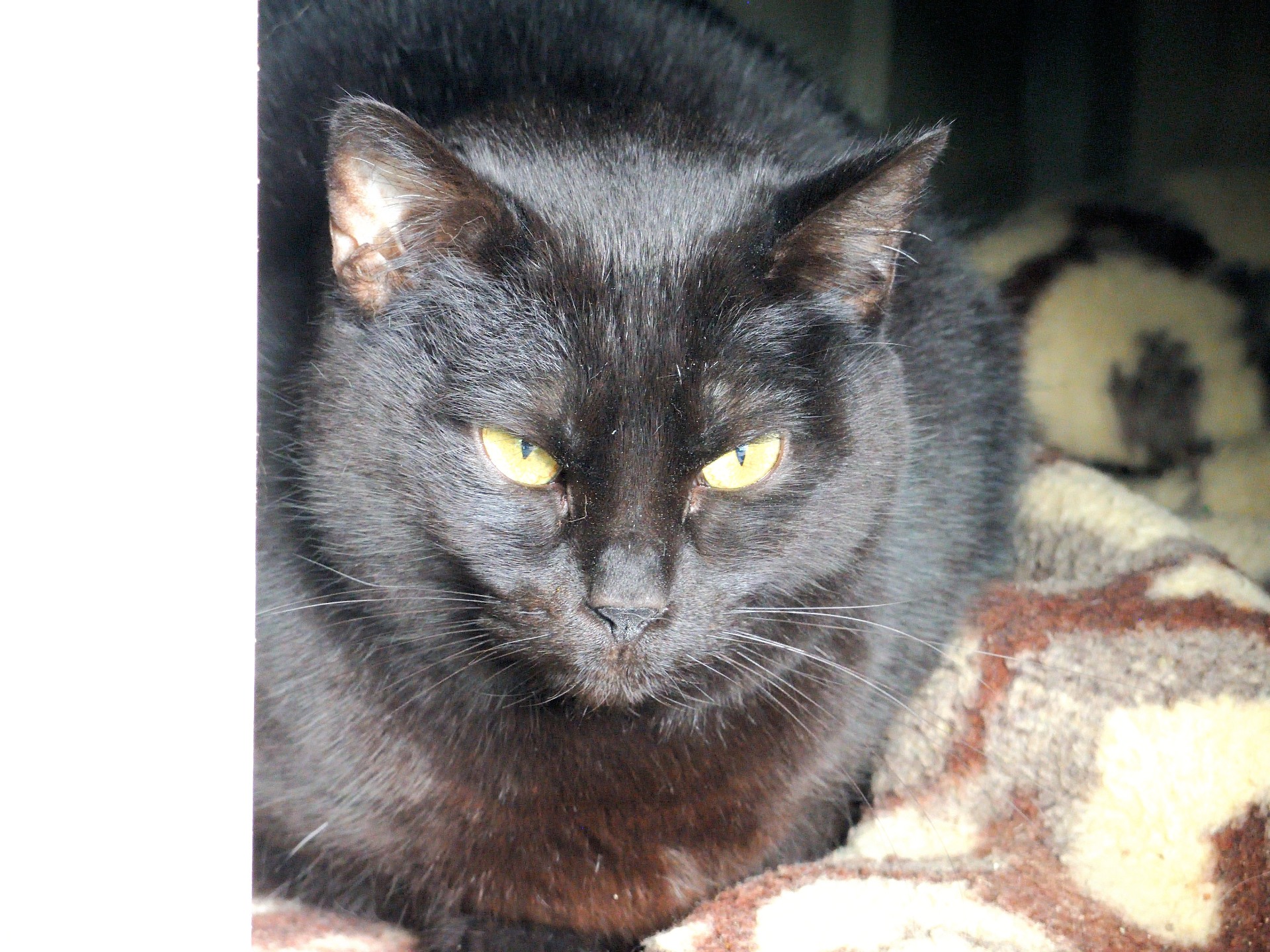 Kampala es esta preciosa pantera que llegaba a nosotras el mes pasado. No se ha mostrado interesada en la gente en ningún momento, pero tampoco bufa o gruñe; se queda mirándote y ya está. No hemos  tratado de meter la mano así que no sabemos como reaccionaria. Tiene un pelaje negro precioso: muy oscuro y brillante.