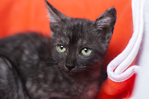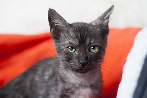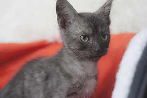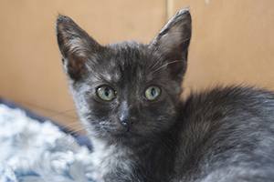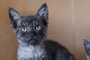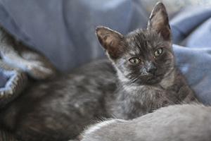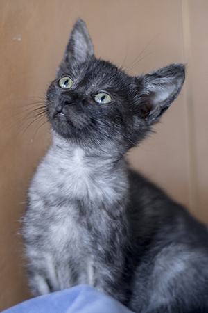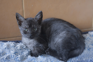 Kay esta estupenda, se ha ido redondeando, cogiendo cuerpecillo, aprendiendo a jugar y cogiendo un poco mas de confianza hacia las personas. Está preciosa y tienes unos ojos verdes divinos, que ya no expresan tristeza, ahora solo falta encontrarla un buen hogar.