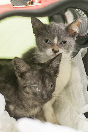 «Al principio tenían mucho miedo, se escondían aunque una vez las tenías en brazos, ni se movían. Todo lo que transmitían en sus ojos era tristeza… no sabían jugar, alucinaban con tener un comedero para cada una… una cesta con calor… las dimos un baño calentito para quitar el mal olor y que estuvieran mas cómodas, las dimos la medicación y de cenar. Las pusimos calor y hasta la mañana siguiente ni se movieron. Son unos angelitos, Llevan 4 días y poco a poco sus ojitos van mejorando y su confianza también«.