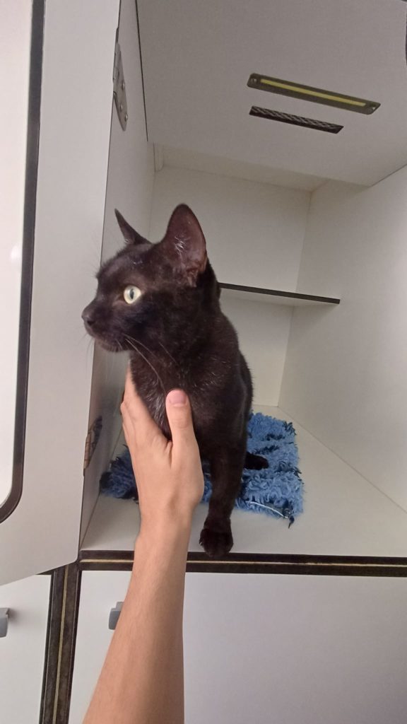 Keba es este precioso gato negro nacido aproximadamente en junio del 2022,a principio de verano llegaba a la perrera municipal, vieron que era un gato muy bueno, probablemente de origen casero. Fue esterilizado y testado siendo negativo así que lo soltaron a los recintos con el resto de gatos.