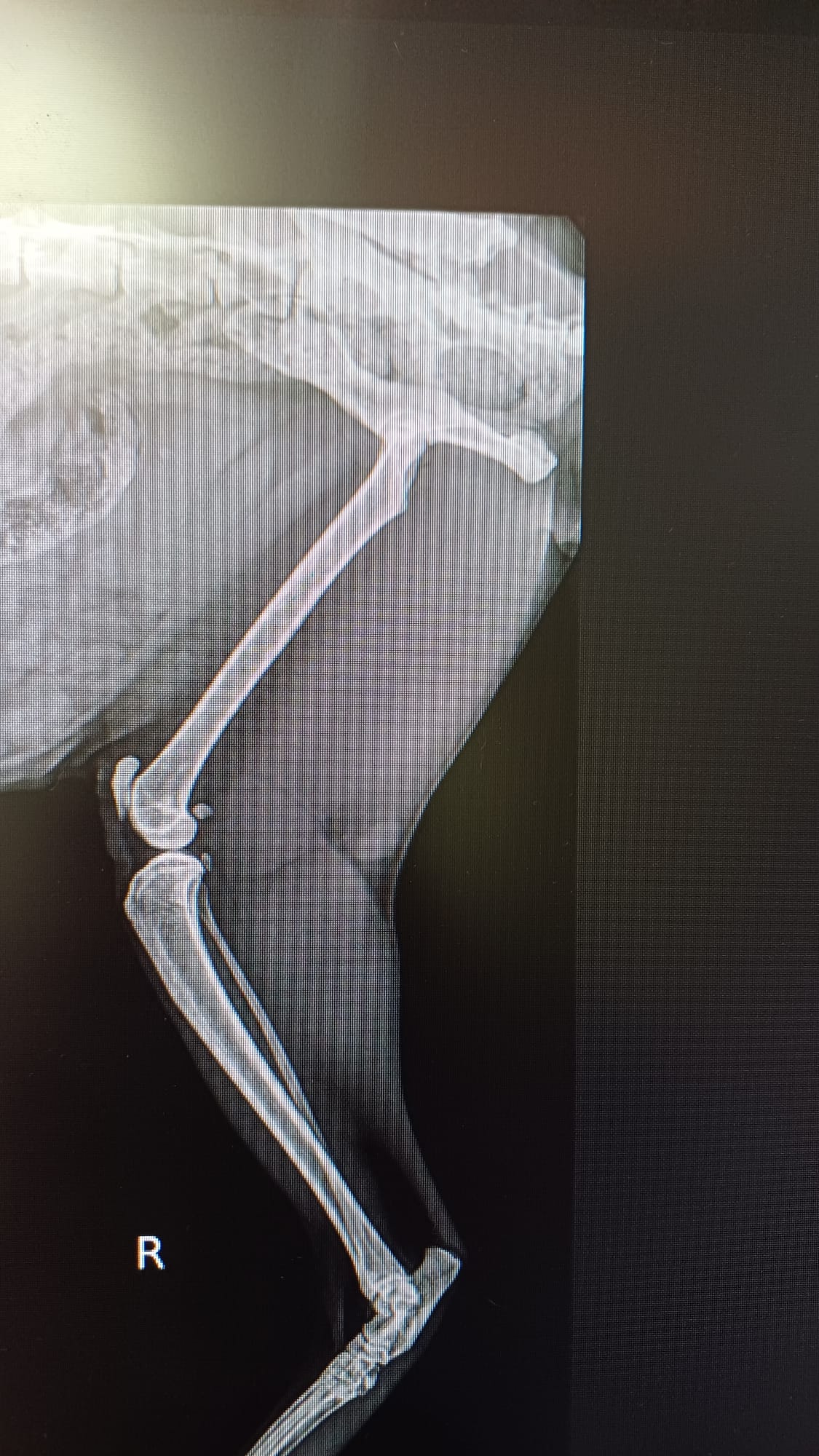 En septiembre cuando subimos a realizar las fotos del calendario vimos que no tenia masa muscular en una de las patas traseras, además de una cojera bastante importante. Nos lo llevamos a nuestros veterinarios donde se vio que tenia una Fractura antigua de la cabeza del femur. Al día siguiente se le realizo una artroplastia de la cabeza del femur. Ahora guarda reposo relativo en nuestro refugio. Es un gato adorable que nos ha robado el corazón desde el minuto 0.