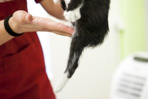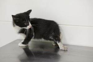 La pobrecita Kensy ha sido recogida en la calle con la patita colgando.