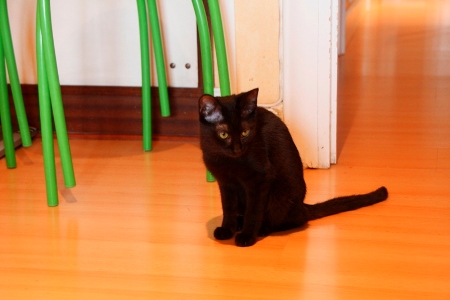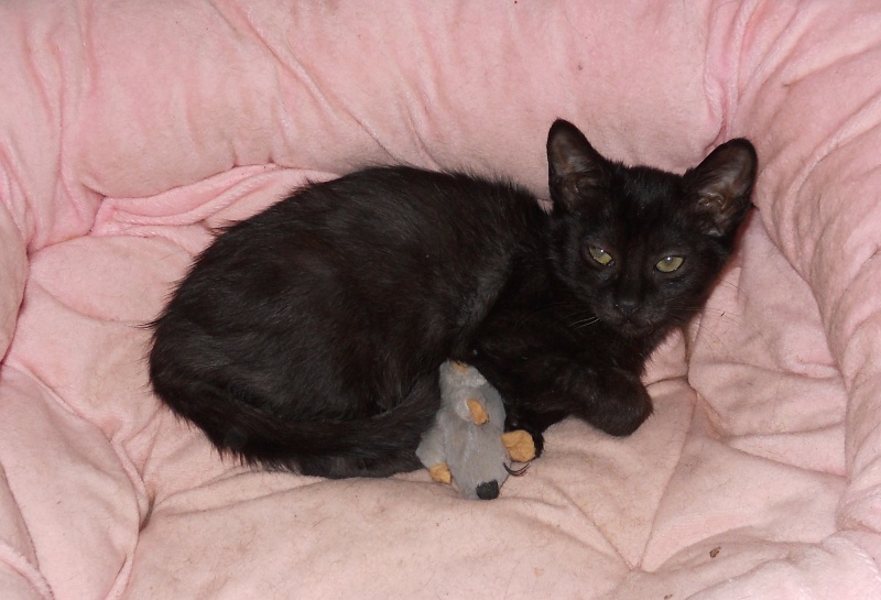 Es una gatita muy pequeña, lleva con nosotros desde que tenia poco más de 1 mes y de eso hace casi 6 meses, pero Kenya es una eterna bebé y apenas aparenta 3 meses en lo que a tamaño se refiere. (calculamos fecha de nacimiento 01/07/2010)
