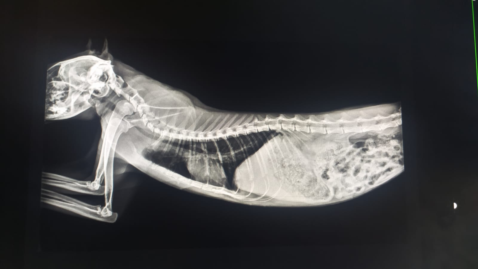 KHESIA llegó hace un mes. Su aspecto era lamentable con mocos sanguinolentos y la boca en muy mal estado. Aparentemente está resfriada, pero en cuanto se le retira el antibiotico recae y se le crean un mocos sanguinolentos. Además hoy le hemos notado que tenia la tripa muy dura y le hemos hecho una radiografia. Aparentemente no está haciendo sus necesidades de forma correcta y tiene el sistema digestivo colapsado. La semana que viene le harán más pruebas y una rinoscopia para descartar polipos o ver que le está pasando en el sistema respiratorio.
