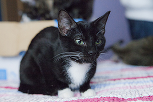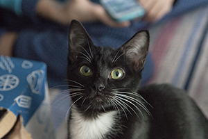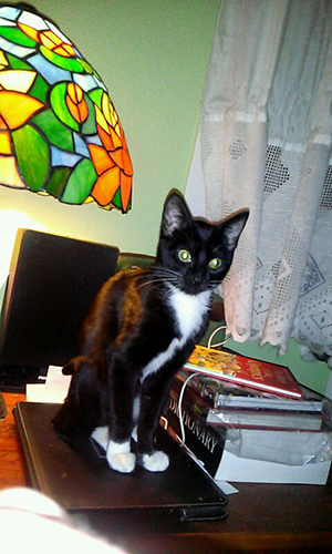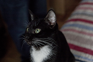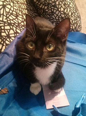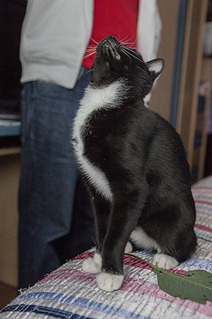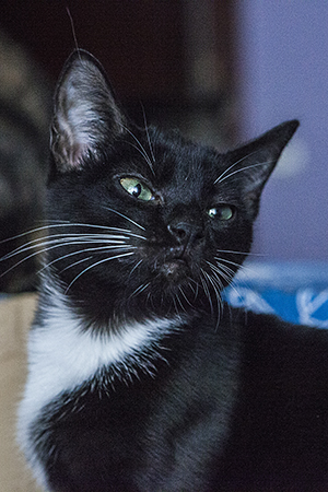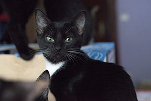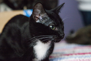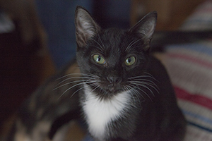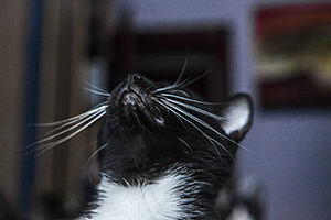 Es muy llamativa porque es de un color negro azabache contrastado con sus calcetines blancos en las cuatro patitas y en el pecho, por no hablar de esos bigotes tan bonitos que le hacen una carita preciosa.