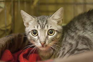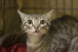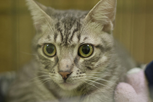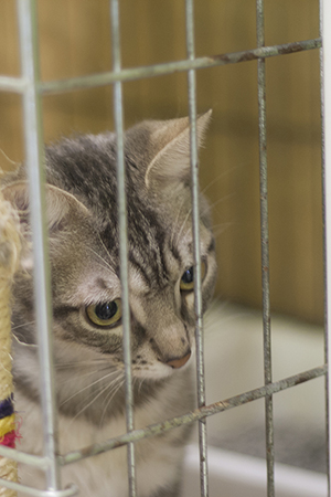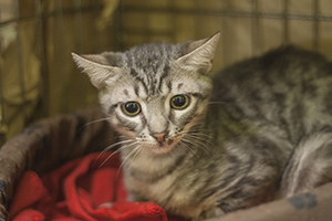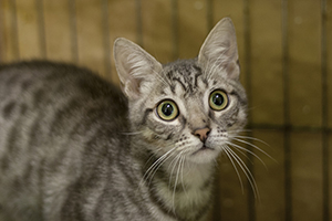 Kike esta creciendo y convirtiéndose en un gatito de con unos ojazos preciosos que todo lo mira con interés y curiosidad, sigue un poco tímido, necesita confianza y un sitio estable. Ahora mismo espera su oportunidad en una jaula, lo cual no le favorece mucho para que vaya perdiendo la timidez.