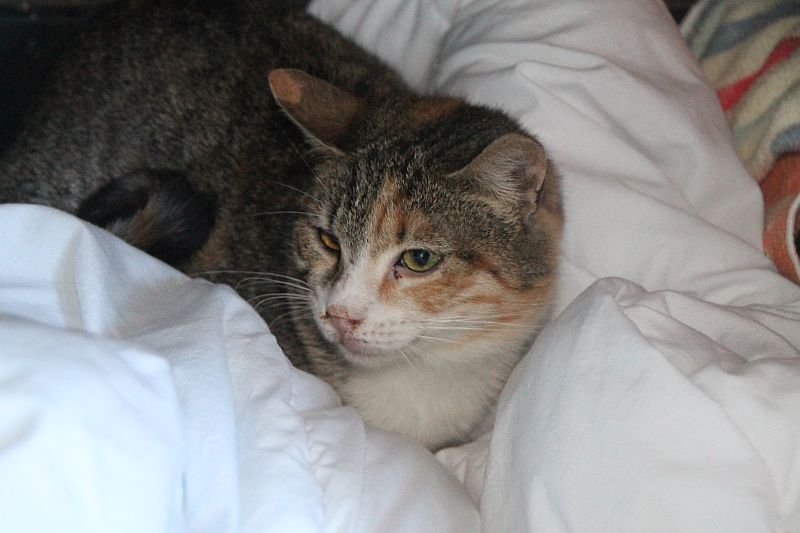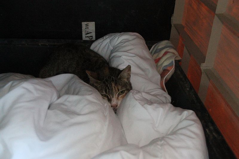 Allí ha llegado la pobrecita algo fastidiada…pero disfruta calentita remetida en su edredón y sintiéndose protegida