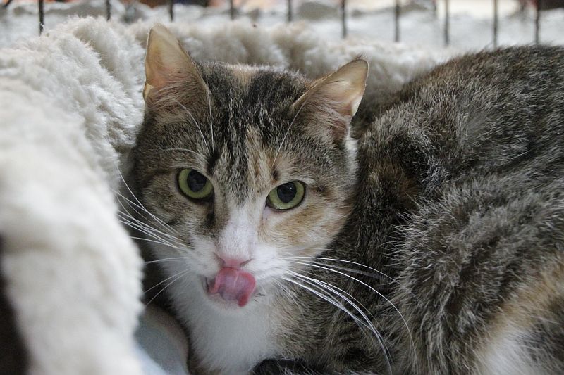 Kimberly sigue en el refugio y sabemos que por su condición de inmuno no lo tiene fácil. Sigue siendo la gata tímida que era. Se muestra reservada, pero siempre agradece los mimos.