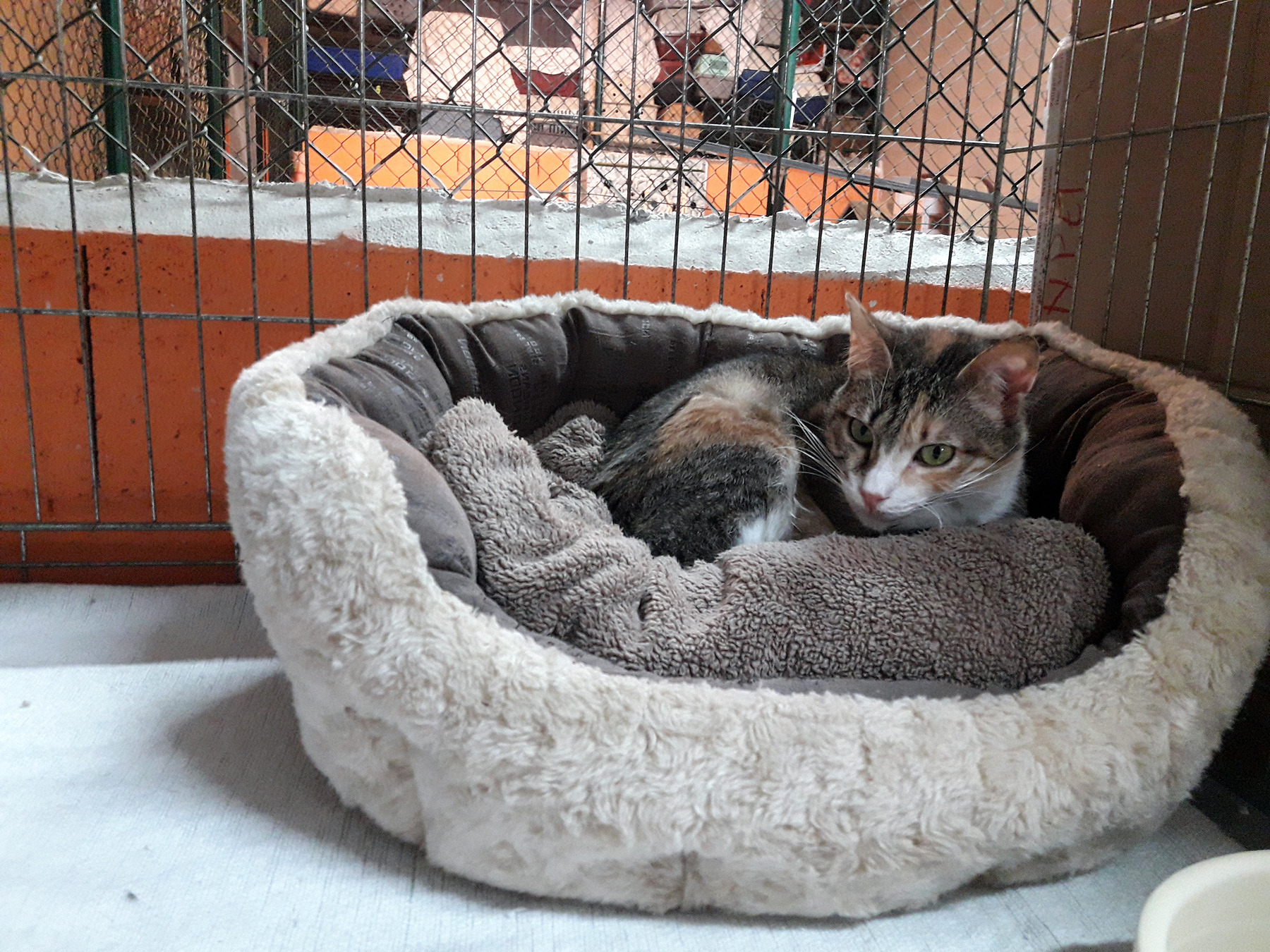Se encuentra muy desubicada y asustada en un sitio desconocido, en una jaula…flaco favor lo han hecho a la pobrecita con las adopciones paradas hasta para cachorros…nos tememos que Kimberly lo va a tener muy dificil y su destino es allí complicado