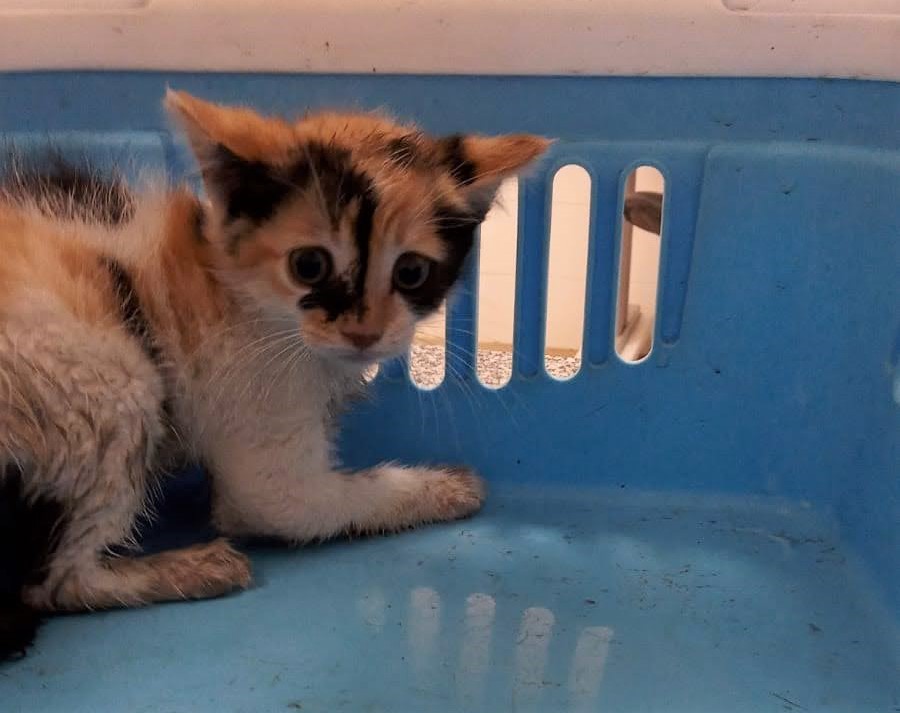 La Chiri es una preciosa cachorra que aparecía hace un par de semanas debajo de un coche. Tendrá aproximadamente 7 semanas y ya ha recibido su primera desparasitación. Desde la casa de acogida nos cuentan que es un poco manipuladora. Cuando está en su jaula ronronea para que le den salir y en cuanto puede se va a investigarlo todo. Tiene mucho interés en los otros gatos y cuando les ve a través de una puerta con cristal quiere salir y les llama. Con el perrete se va animando poco a poco con cautela.