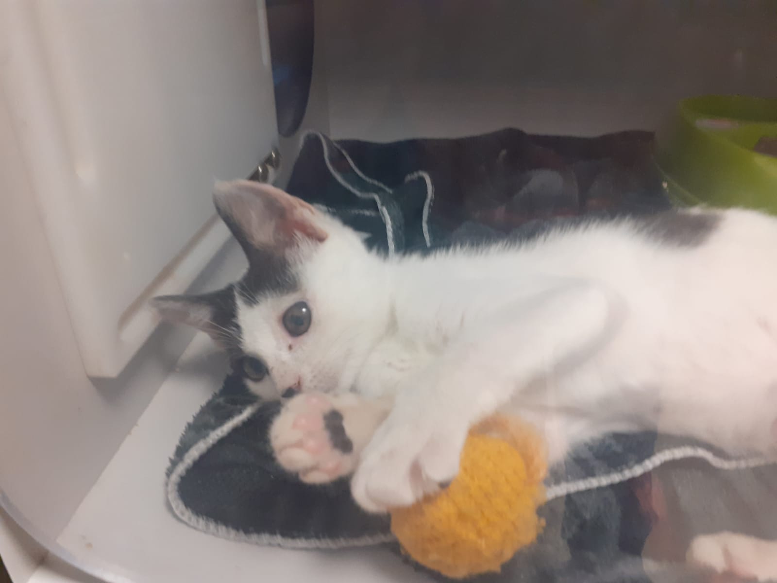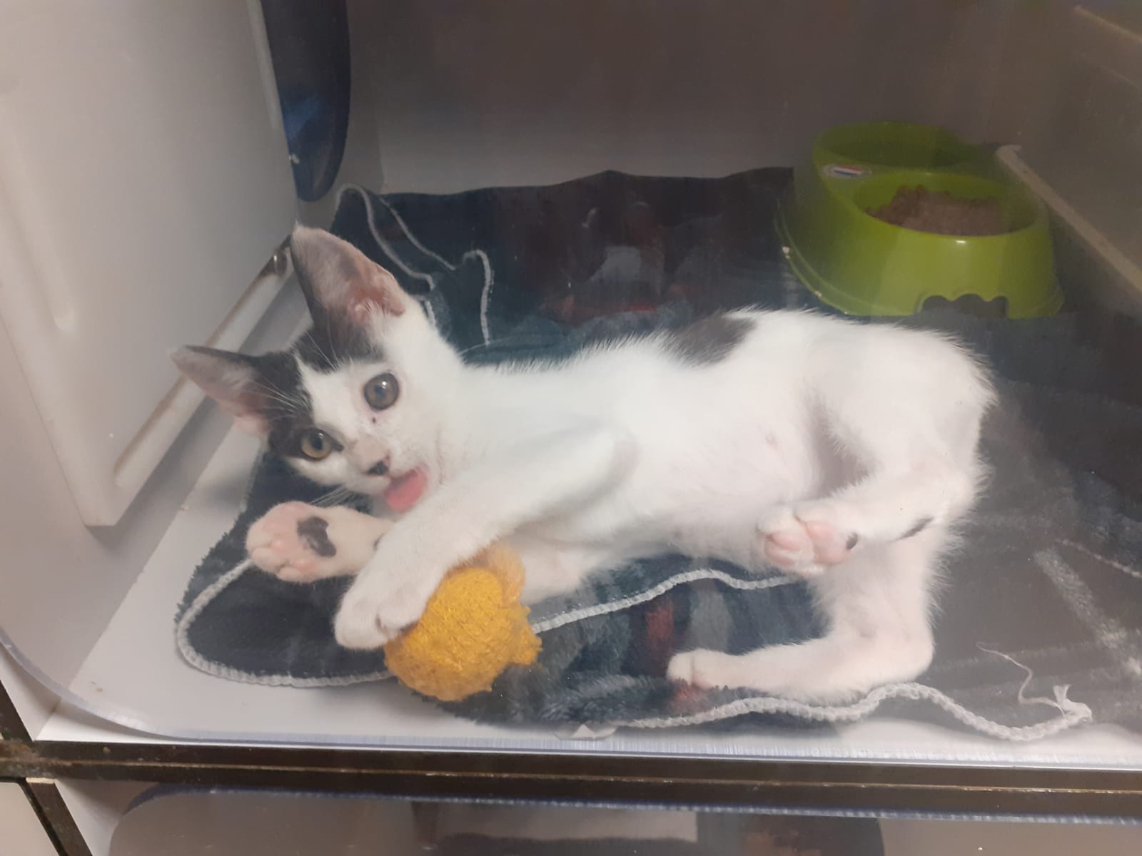 Se ha convertido en una pequeña adorable que la encanta jugar con todo lo que tiene a su alrededor y a nosotras nos encantaría que encuentre su hogar definitivo para salir de la jaula.