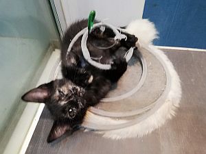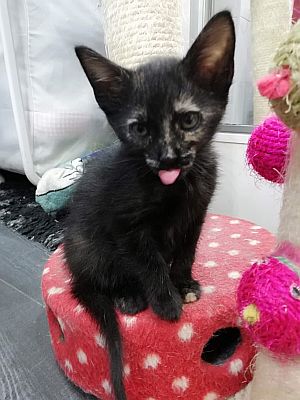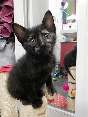 Libertad es la única de los 4 hermanos que queda sin adoptar y eso que es una gatita juguetona, alegre, divertida, cariñosa y que en cuanto te ve se te sube a las piernas o te incita para que la des mitotes, para mí es una gatita 10 Sólo tiene un problemilla….que por la noche se te pone encima de la cara a ronronear y a pedirte mimos jajajajaj.