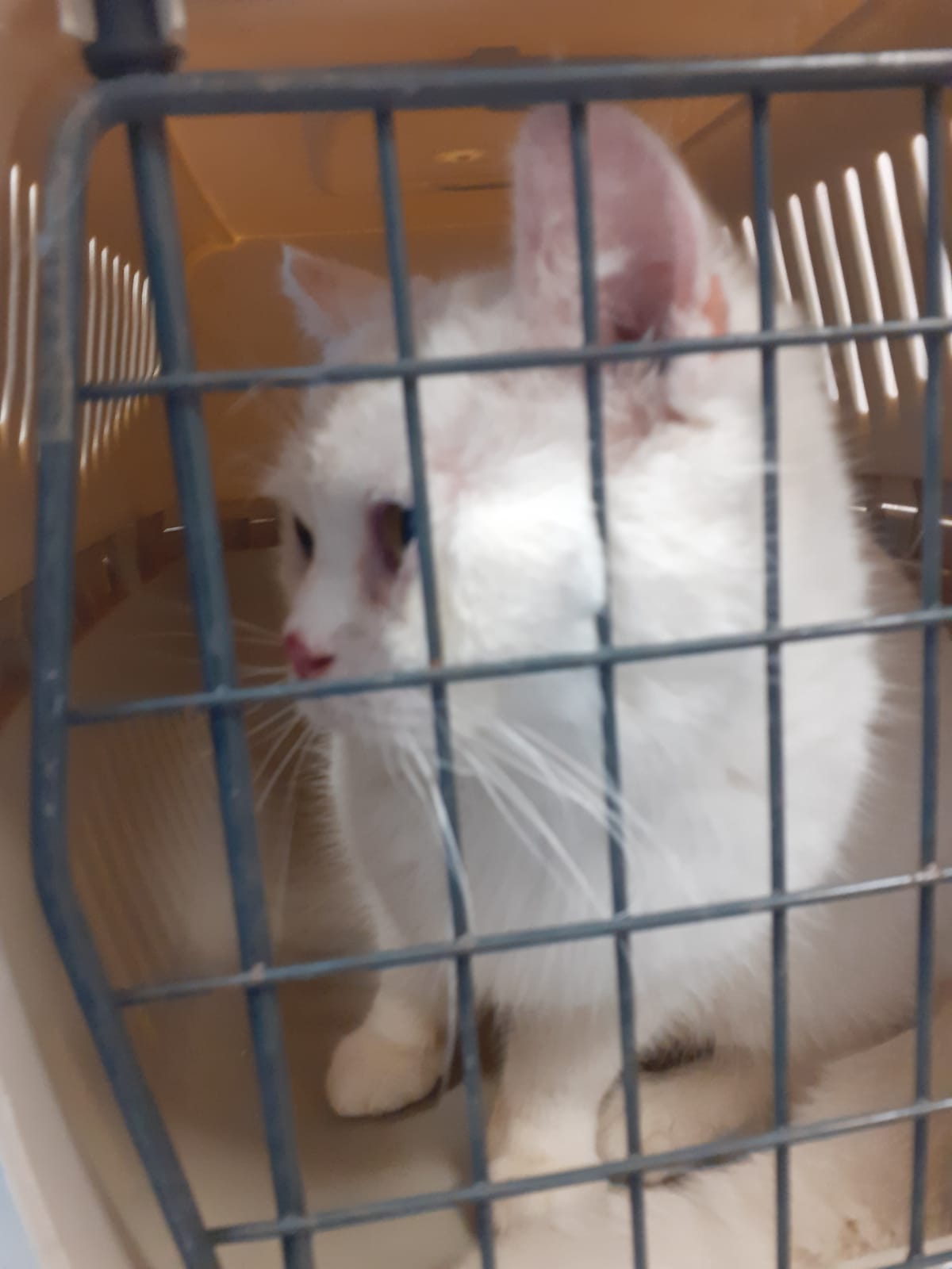 Hemos tenido que sacar a toda la familia para poder salvar los ojitos de los peques que estan bastante afectados. Lisboa por fin podra ser esterilizada y tener una nueva vida. Por el momento se muestra desconfiada aunque hemos podido acariciarla entre los barrotes de la jaula, es si, una vez dejada en su jaula toda su obsesion era espacarse .  Aunque aun no esta lista para dar en adopcion Os la vamos presentando