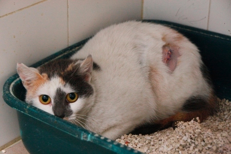 La enteritis de Liz se mantiene, pero ella está tranquila… esperando una familia.
