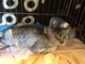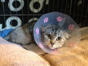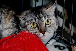 Lluvia es esta preciosa gata que nos ha llegado. La hemos llevado al veterinario porque la veíamos andar raro.