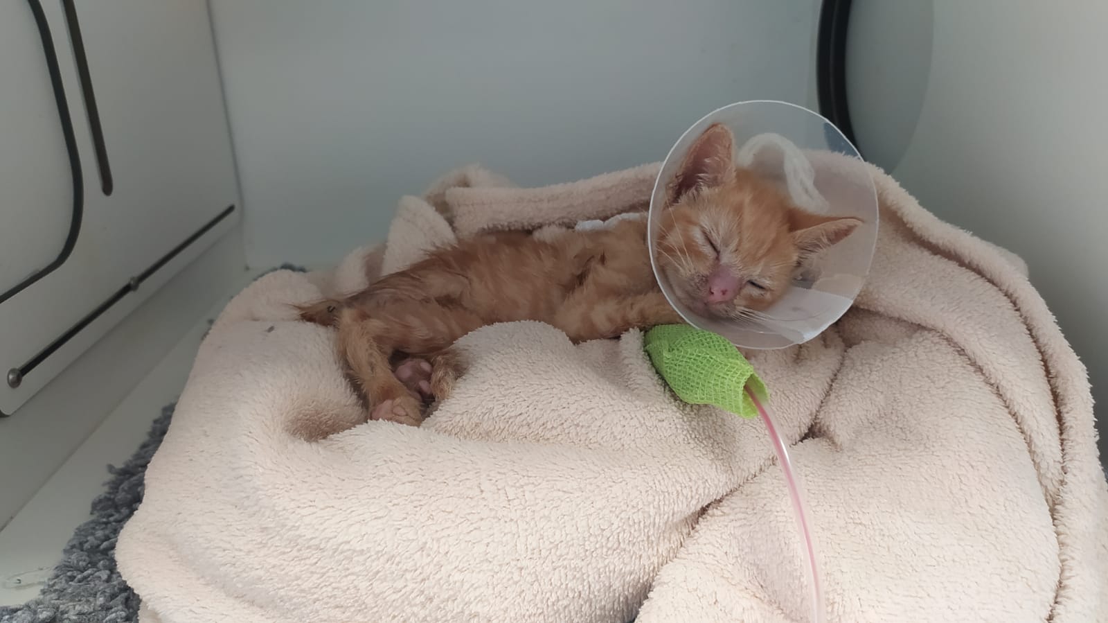 Lomi Lomi es esta preciosa bebé que nos llegaba a primeros de Septiembre. Tan pequeña una compañera se la llevó a casa para poder darla biberones pero de repente hizo un prolapso rectal a consecuencia de una gran infestación parasitaria. Tan pequeña los veterinarios le hicieron una costura en bolsa de tabaco que en un principio aguantaba bien pero pasadas un par de semanas se ha vuelto a prolapsar y aun siendo tan peque han tenido que intervenir.