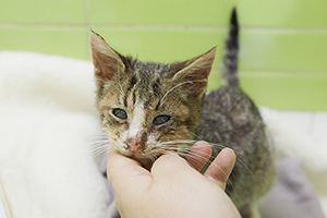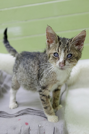 No es el primer caso de un gatito que nos llega en estas condiciones… podemos aseguraros que aunque termine quedando ciega, ellos se las apañan muy bien, no tienen ningún problema una vez conocen el sitio.
