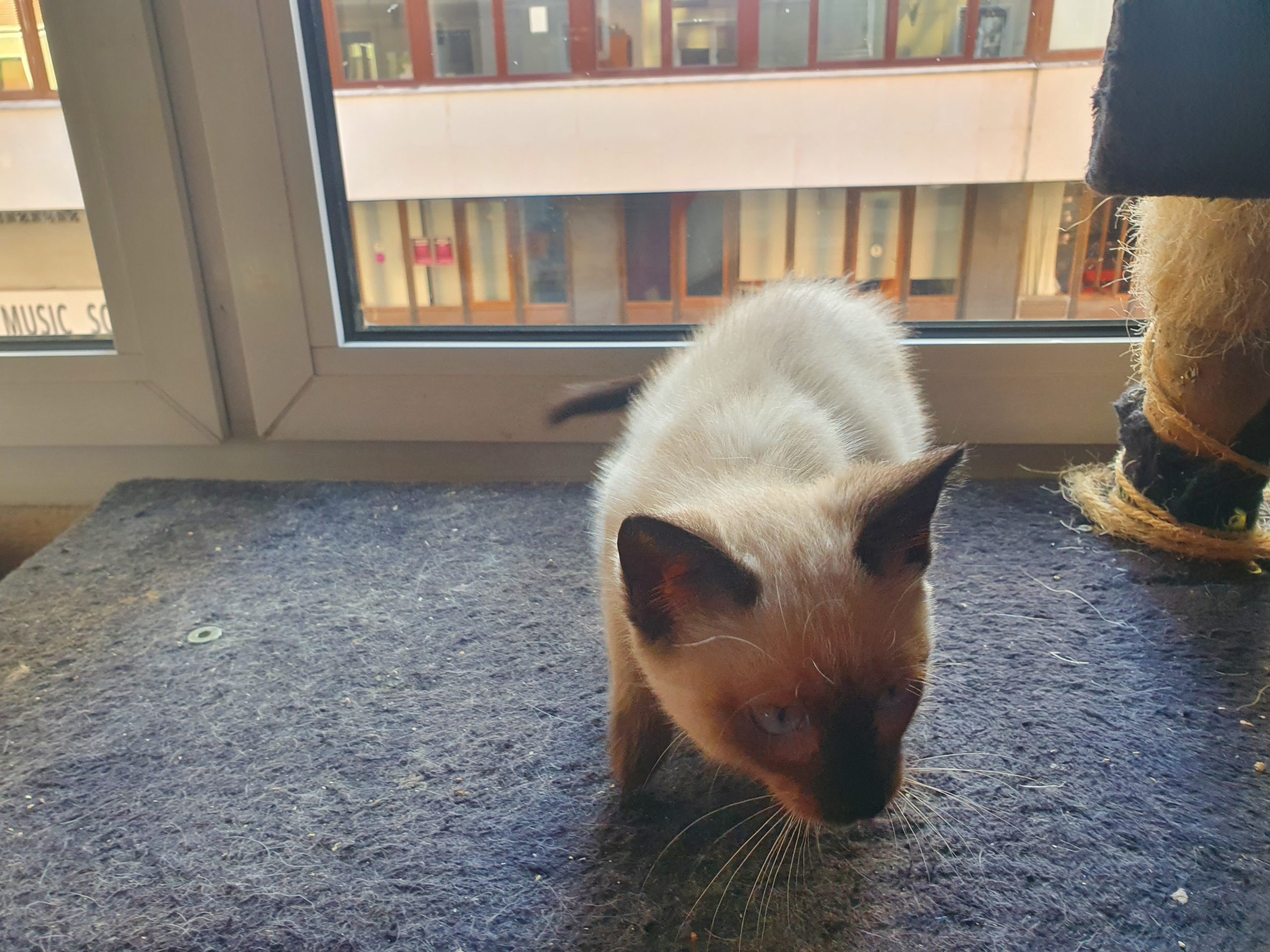 Es un poco timido al principio a si que es un gato que necesitará paciencia los primeros días, tener un compañero de juegos seguro que le viene muy bien para la socialización