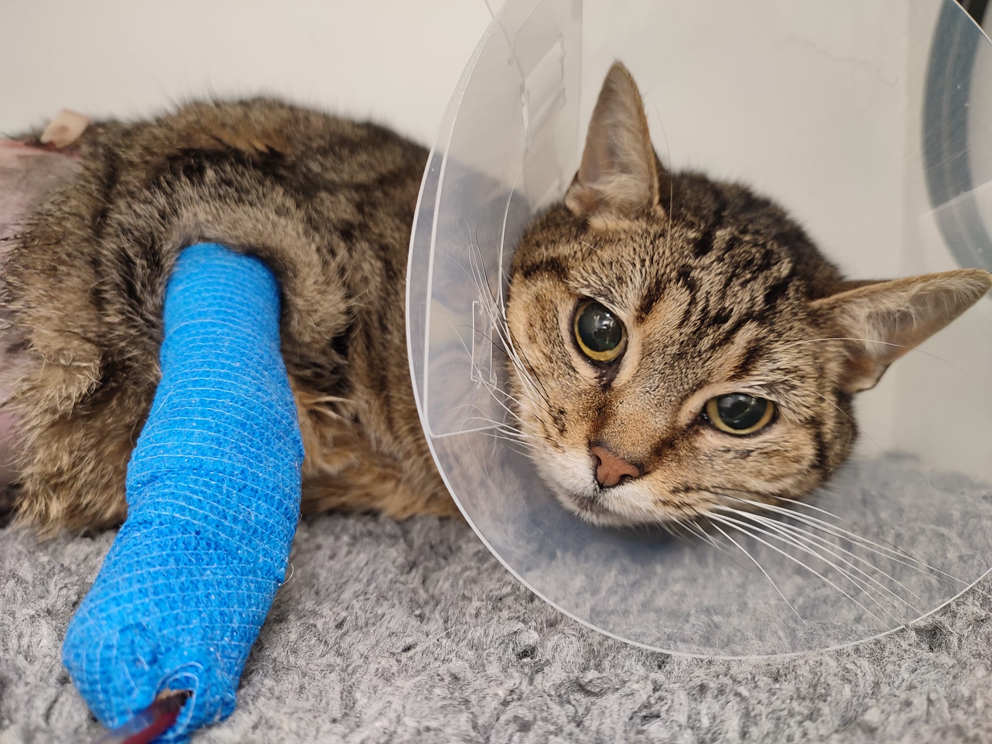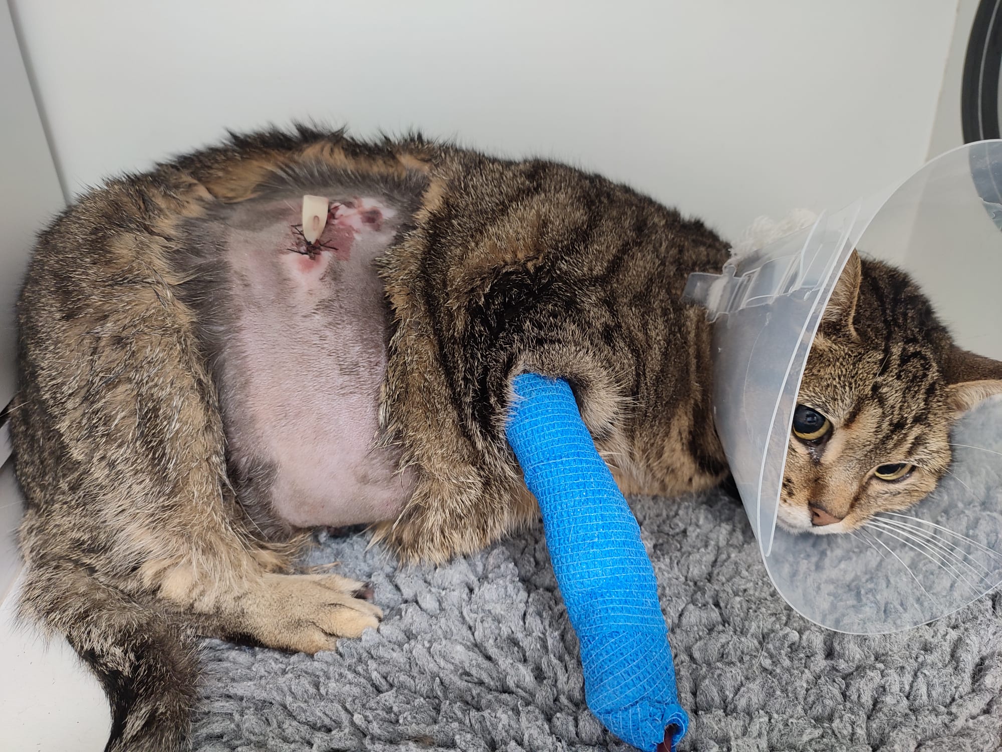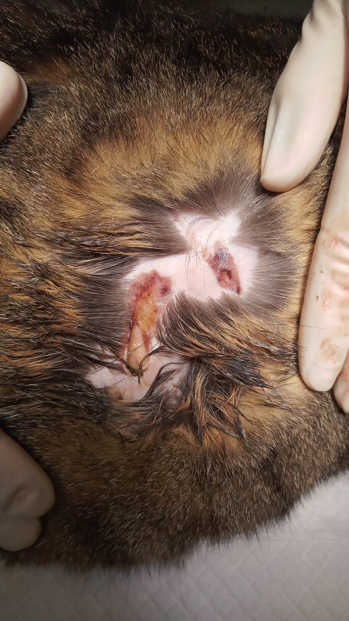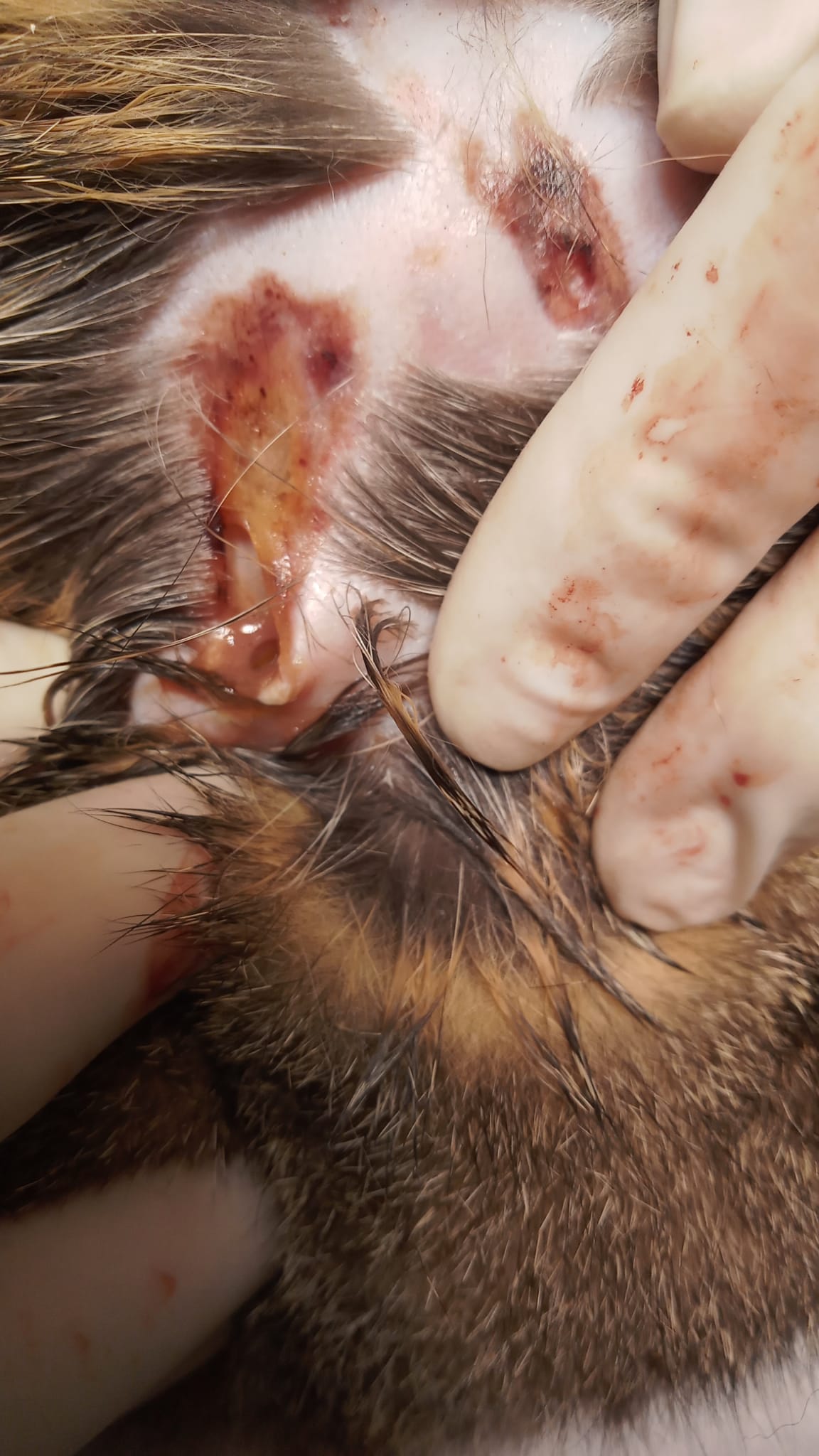 Hace unos meses ha sido atacada por un perro provocándole una gran avería en la piel por lo que fue necesario ponerle un drenaje. La analítica , tanto bioquímica como hemograma no es mala.