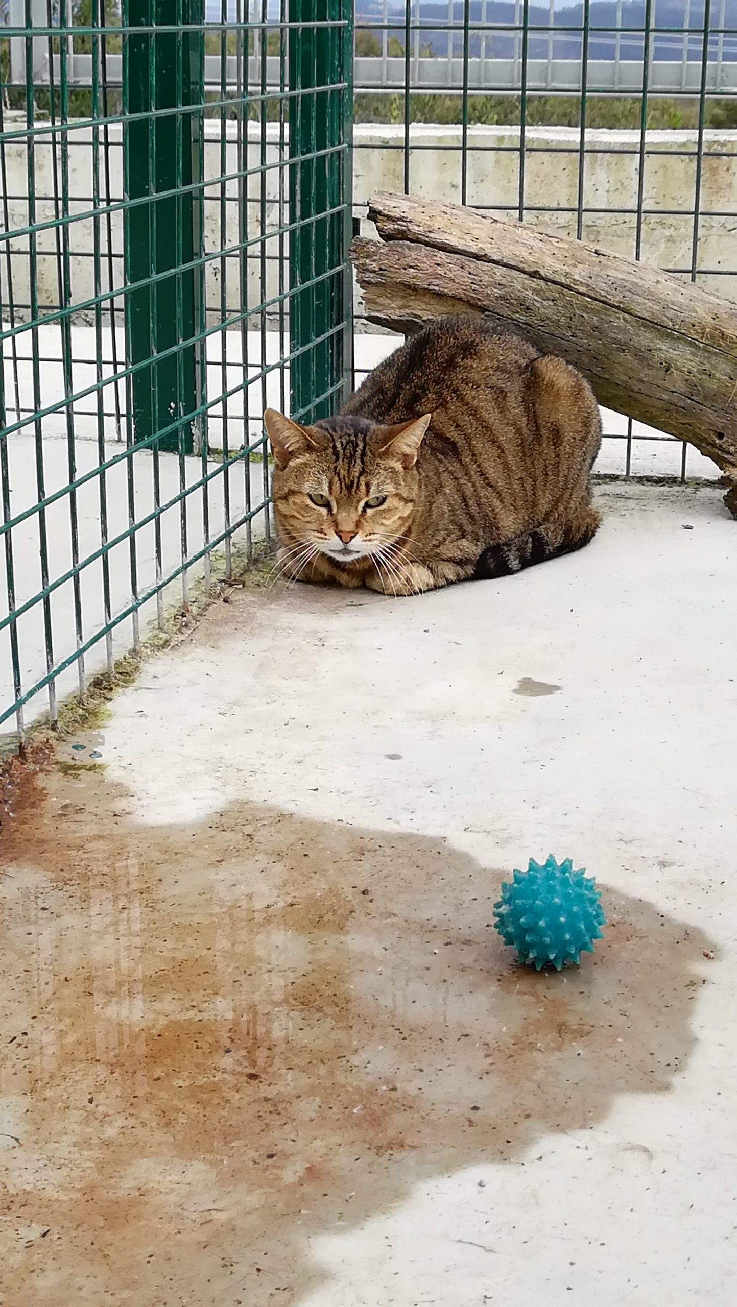 LUMBRE tiene ya unos 12 años. No ha tenido suerte. Su caracter tímido y huidizo la hace ir quedandose atrás en la búsqueda de familia. Comparte el recinto con otro gatos pero prefiere la soledad.